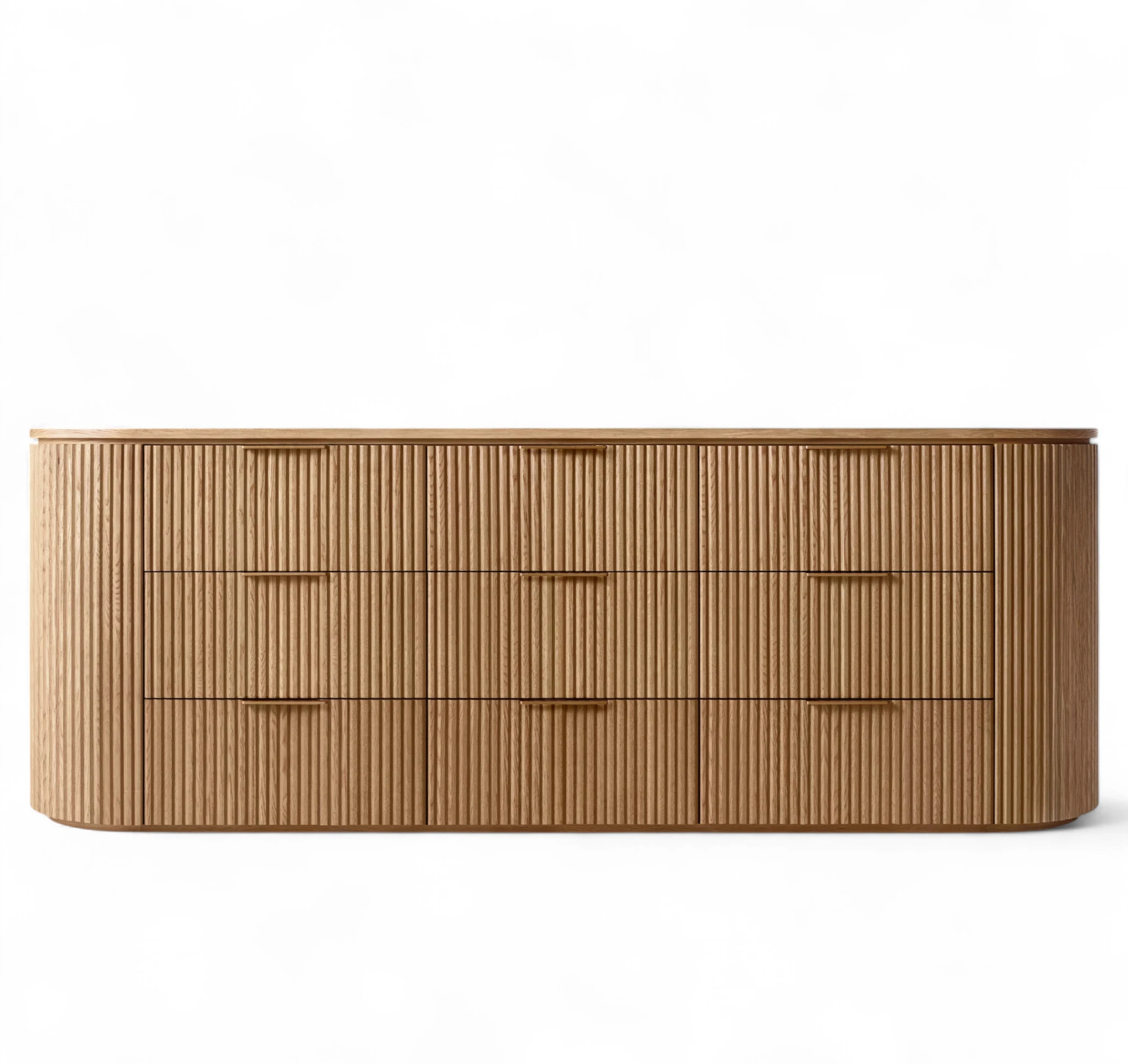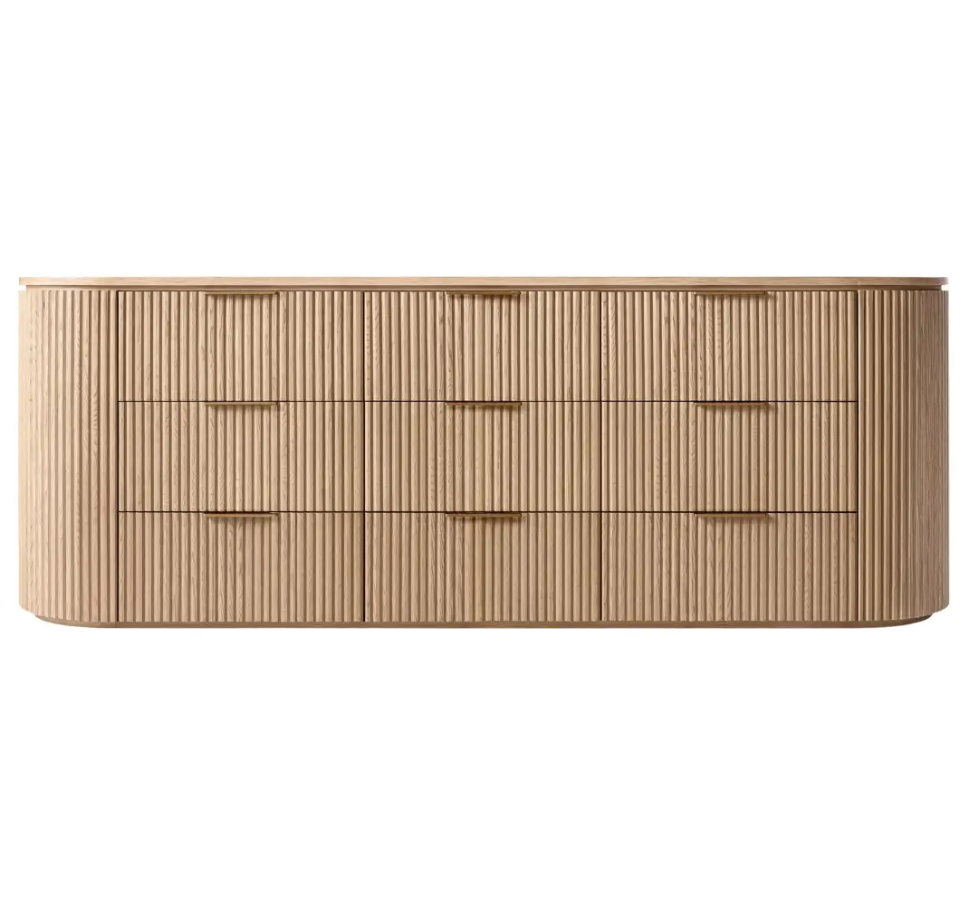 • Crafted of solid American white oak reeding and veneers, and engineered hardwood