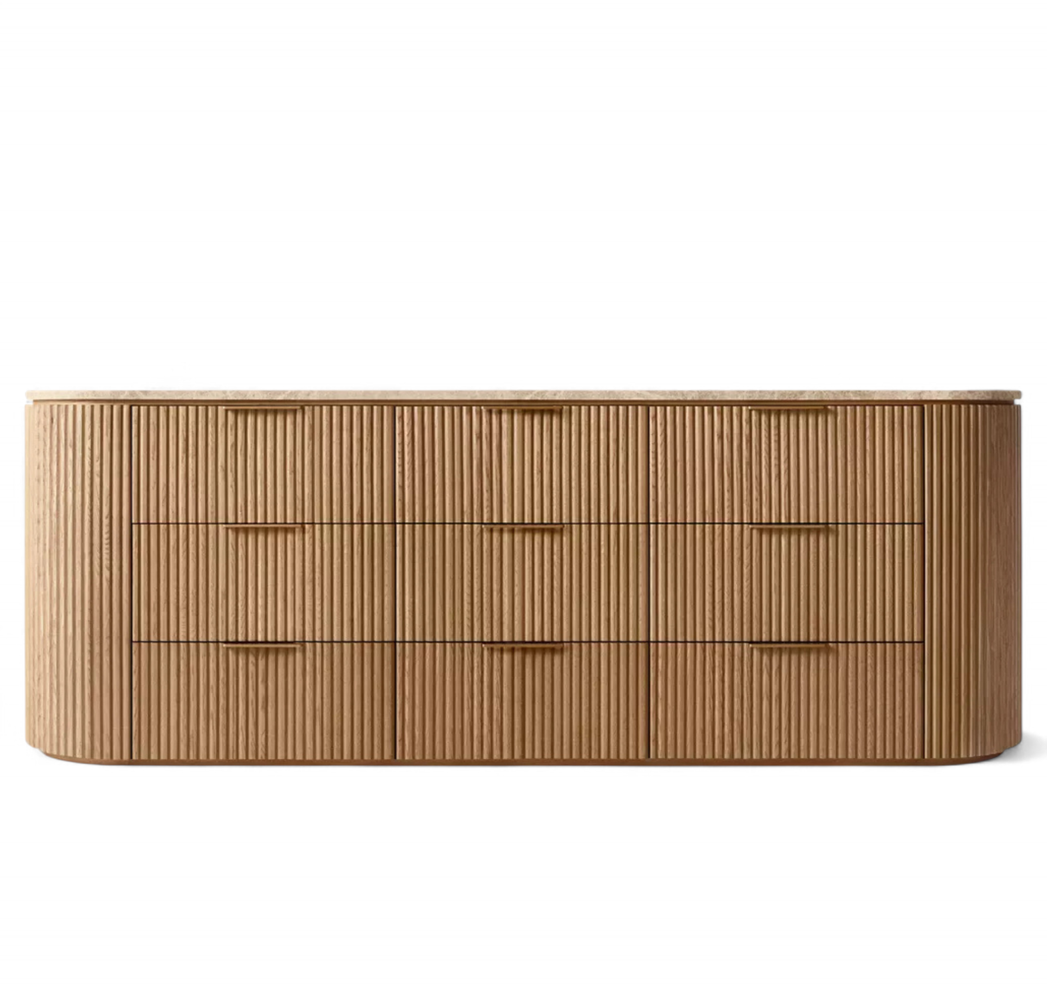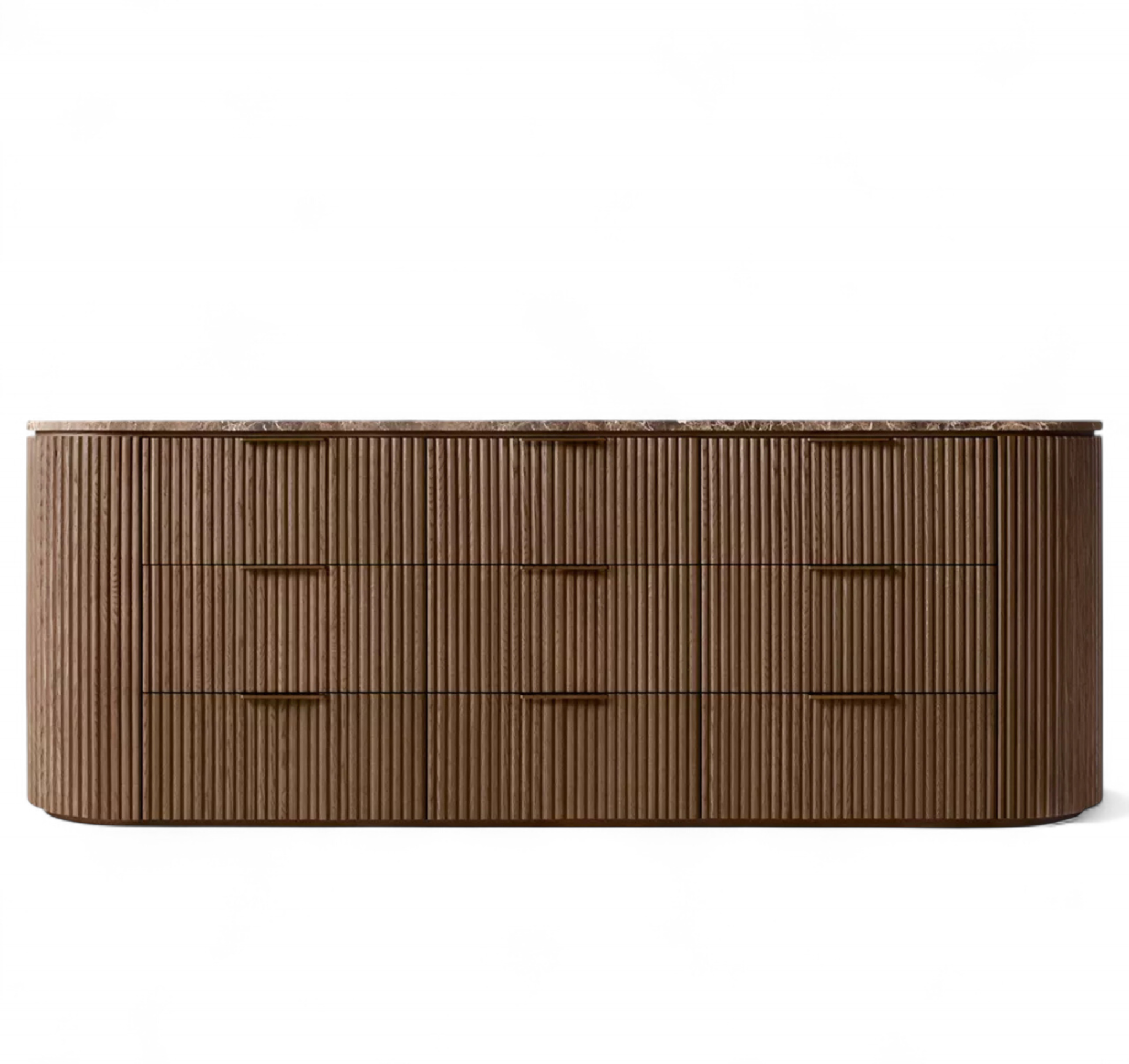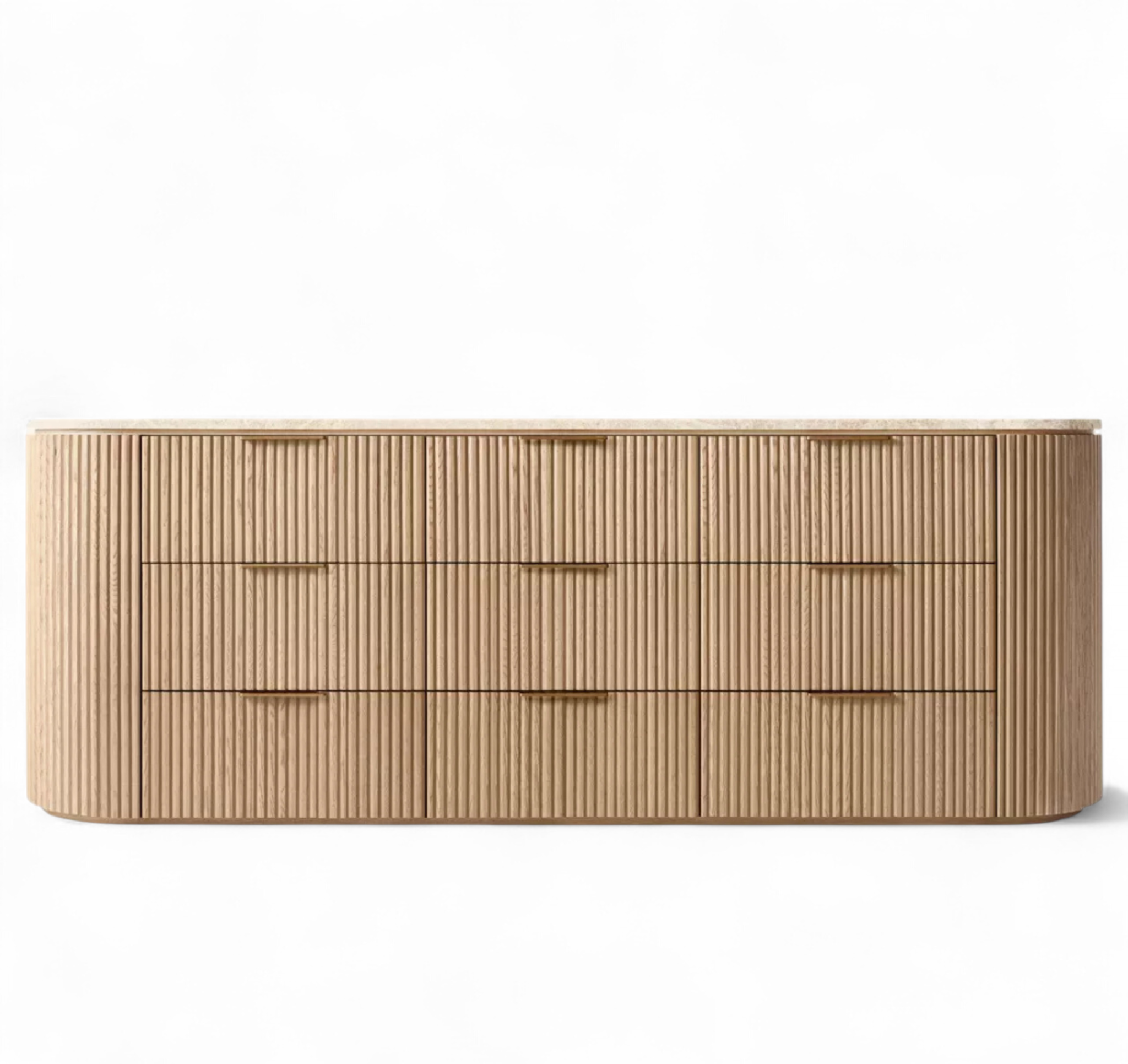 • Vertical oak reeding is finished in an intensive, multistep process that results in a smooth surface with visible grain