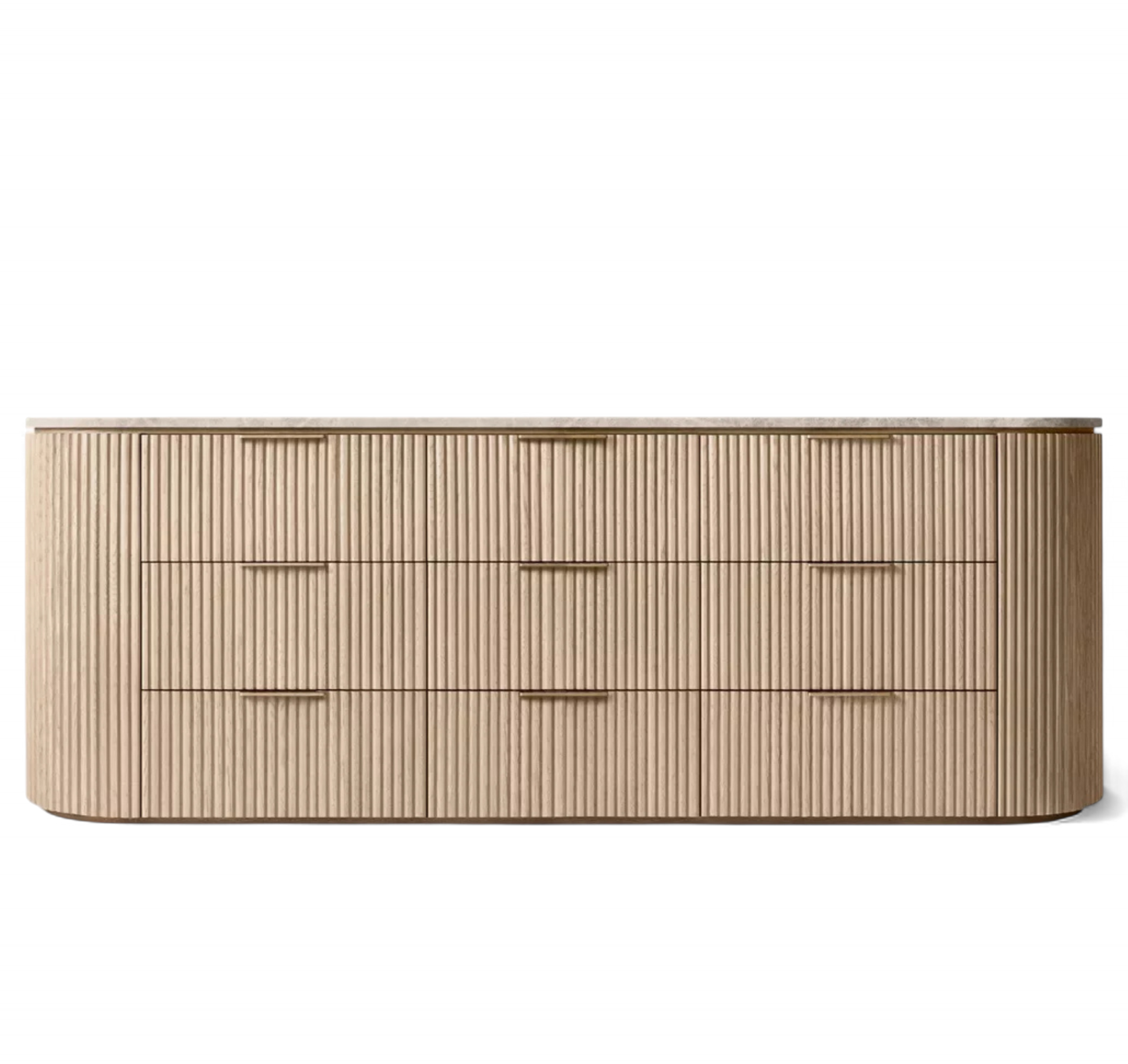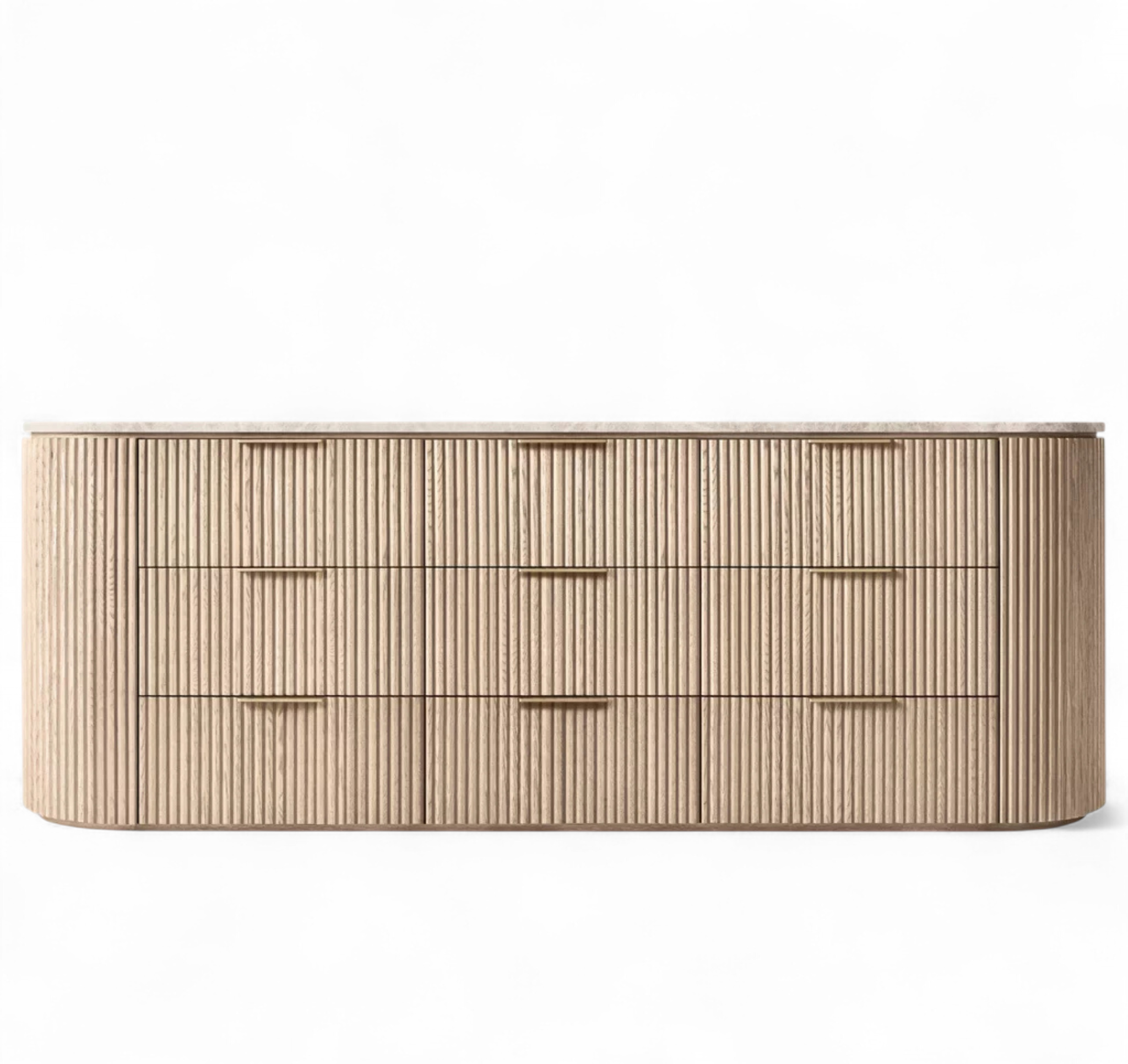 - Vertical oak reeding is finished in an intensive, multistep process that results in a smooth surface with visible grain