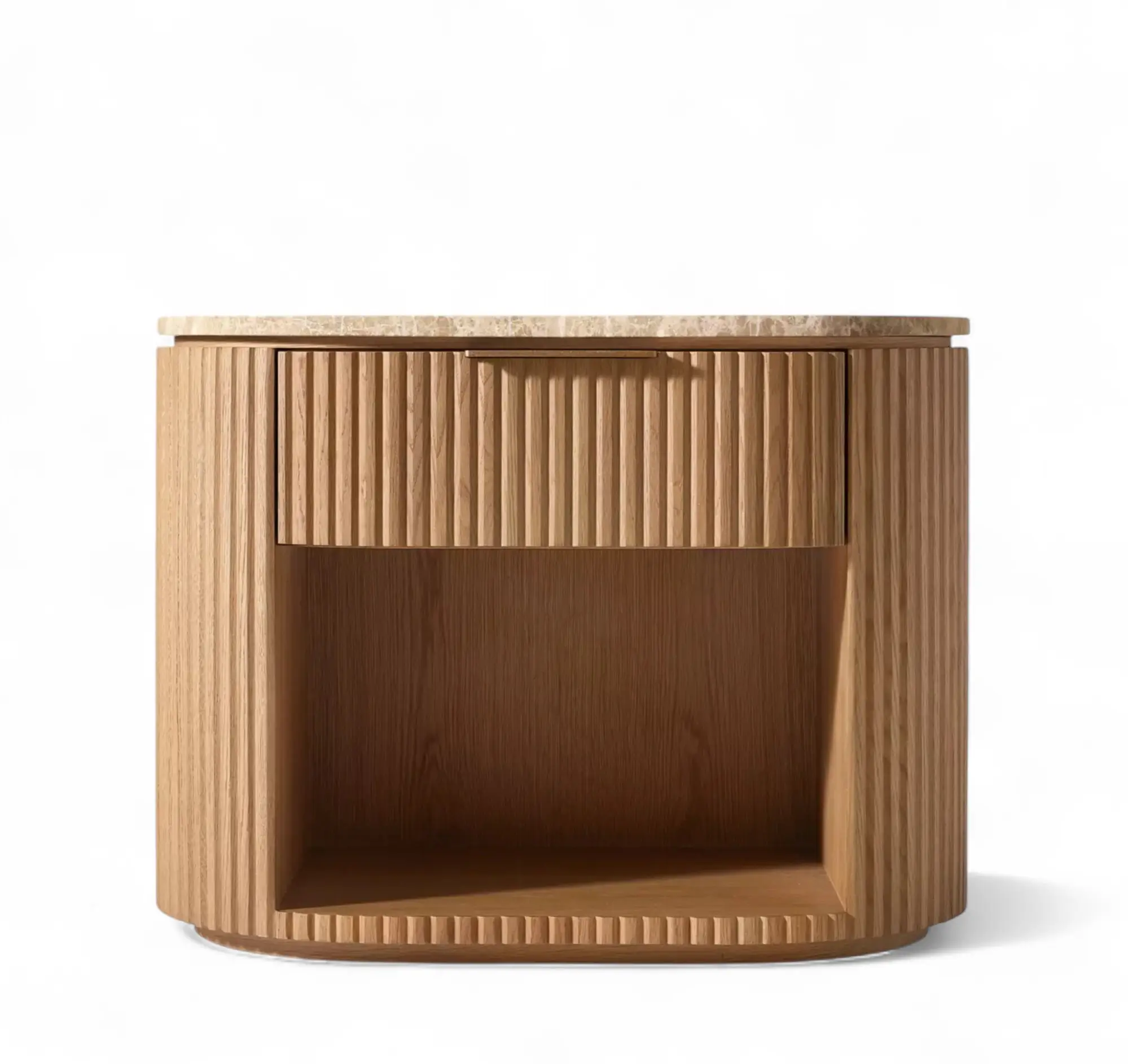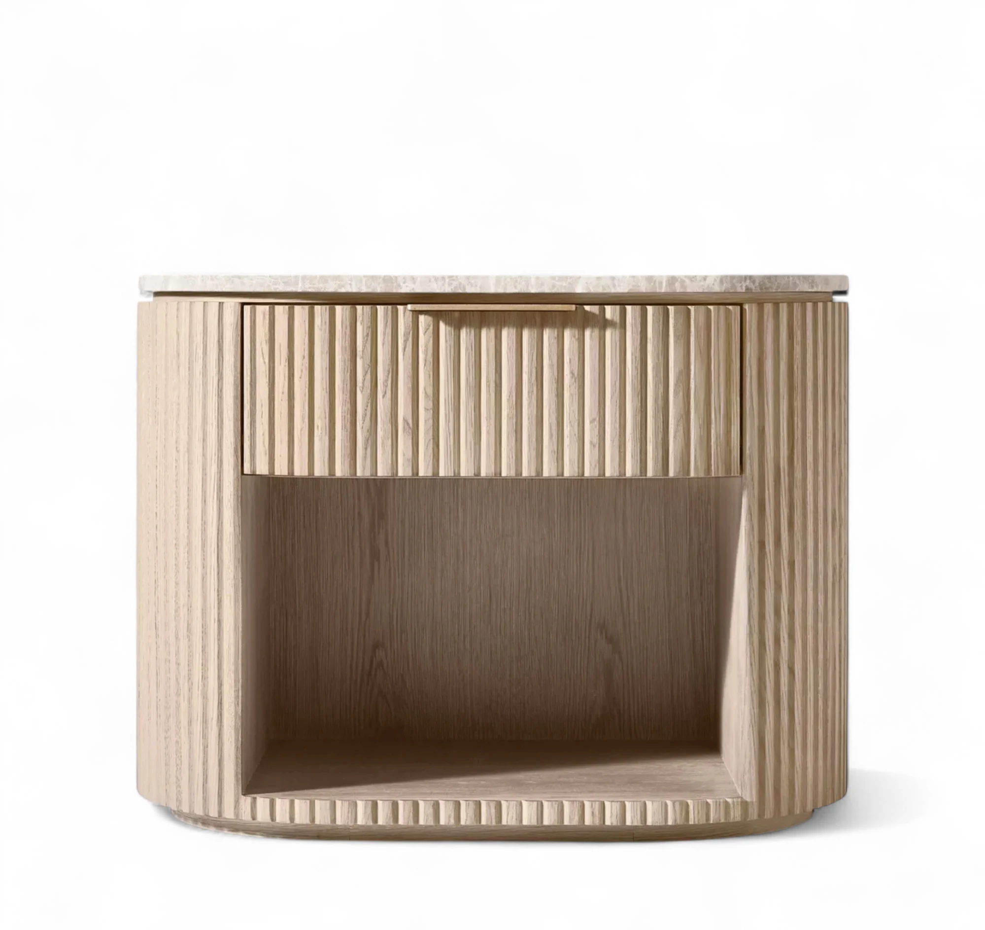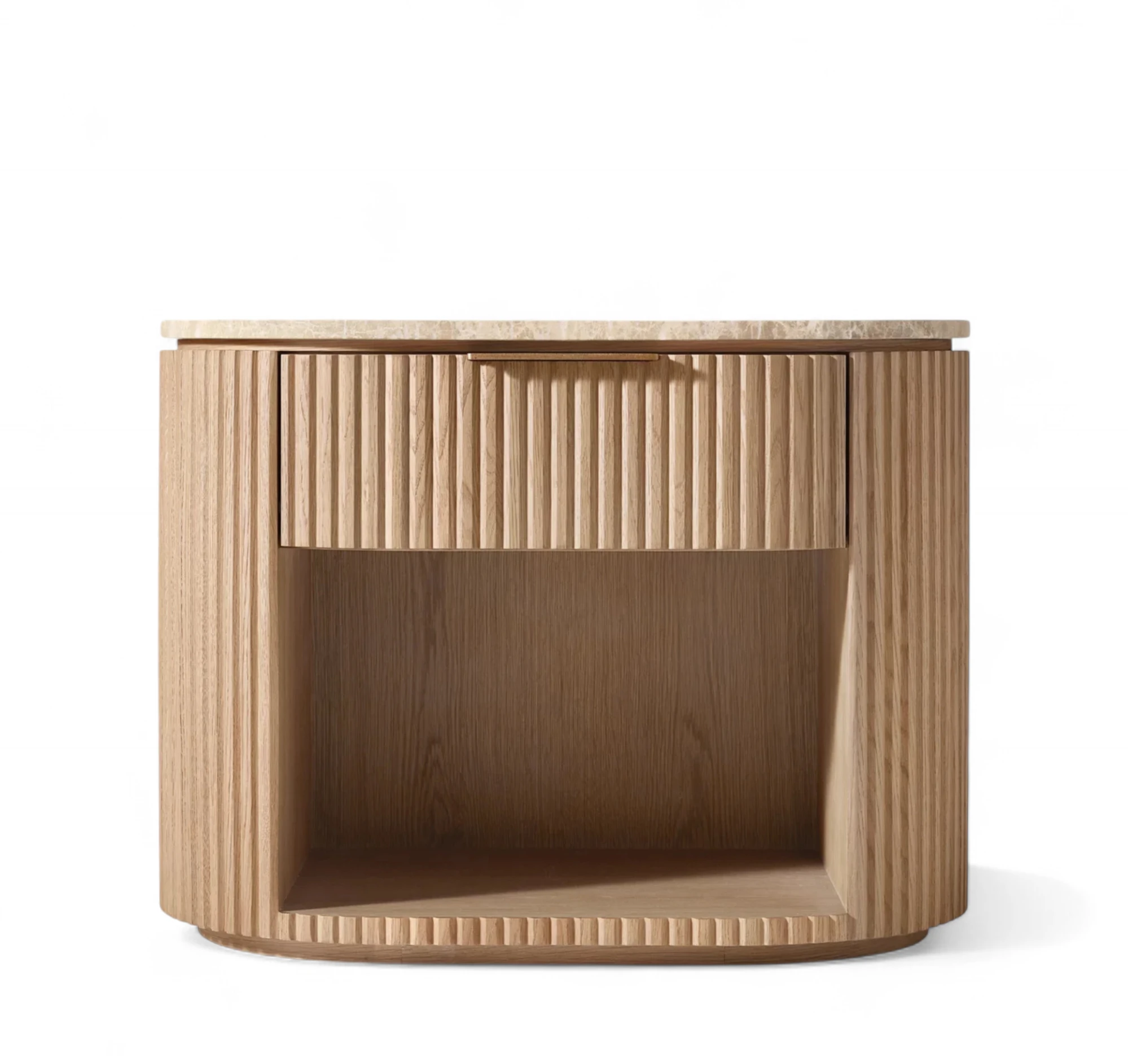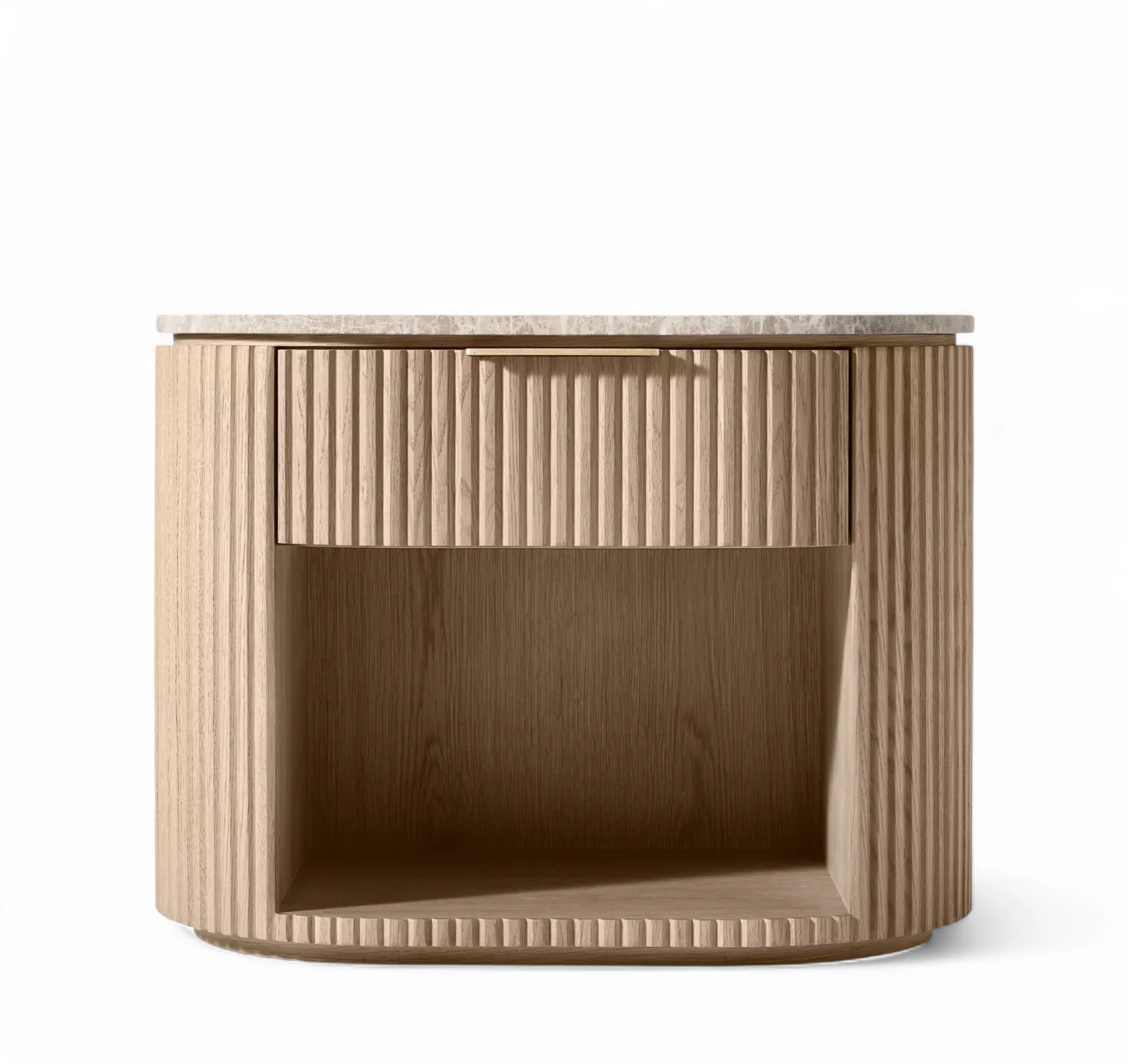 - Base is crafted of solid American white oak reeding and veneers, and engineered hardwood,natural stone