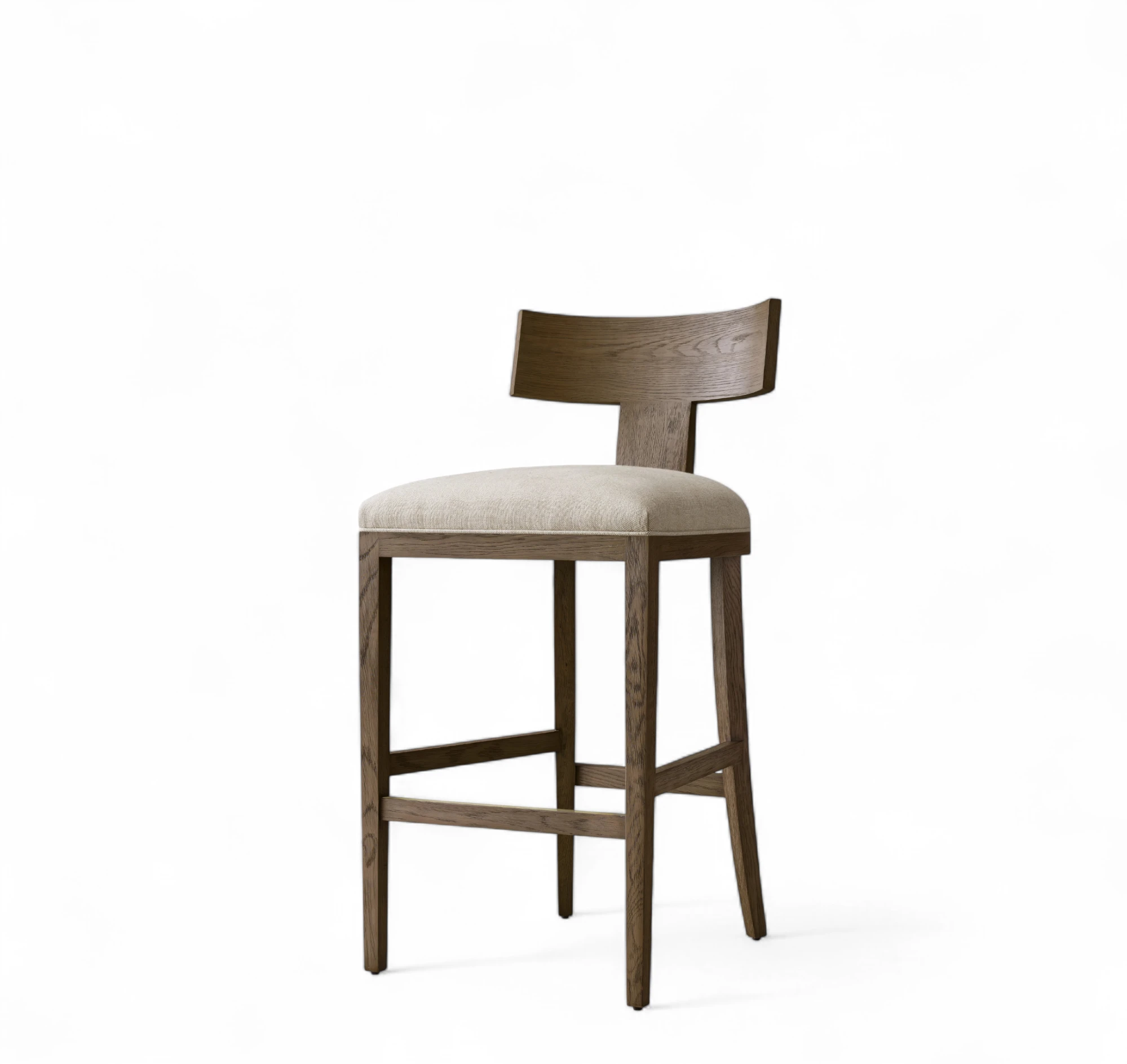 French Contemporary T-Back Fabric Bar & Counter Stool