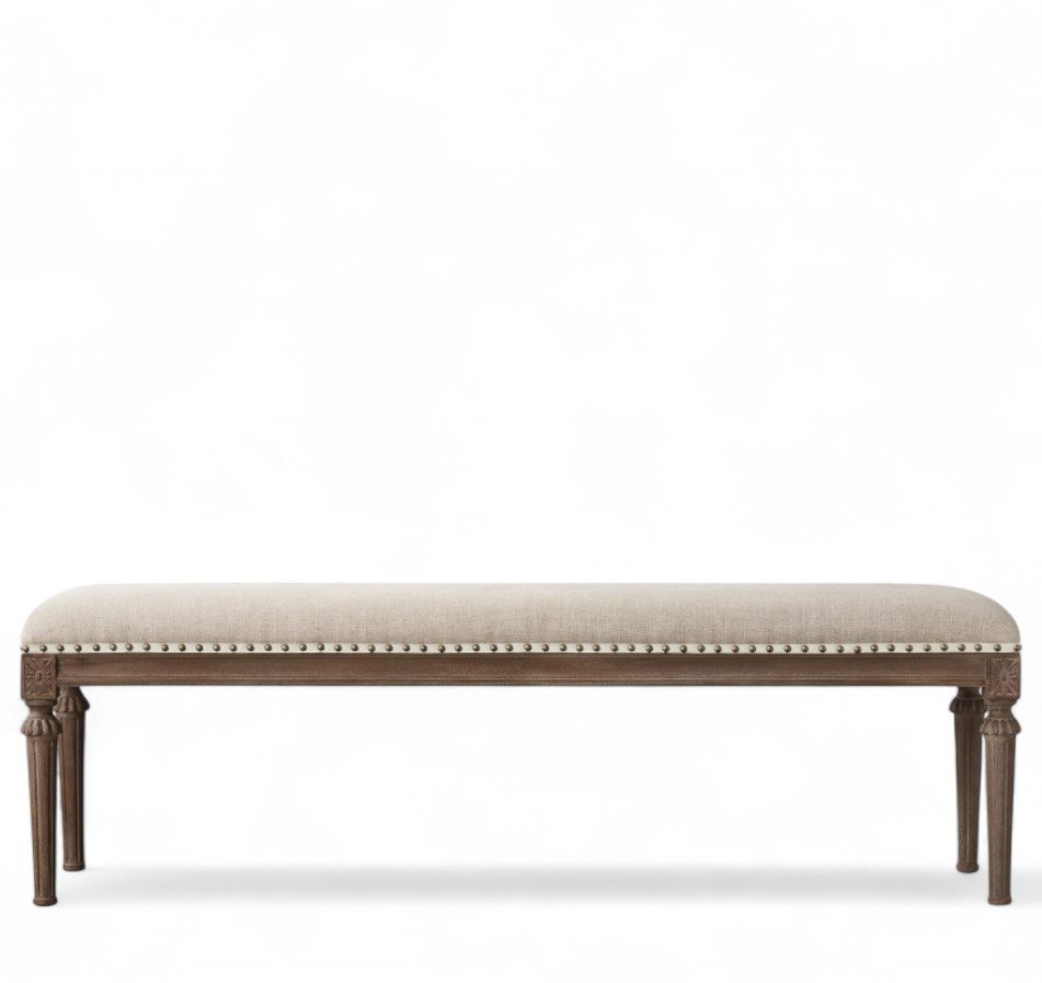 French Fabric End-of-Bed Bench