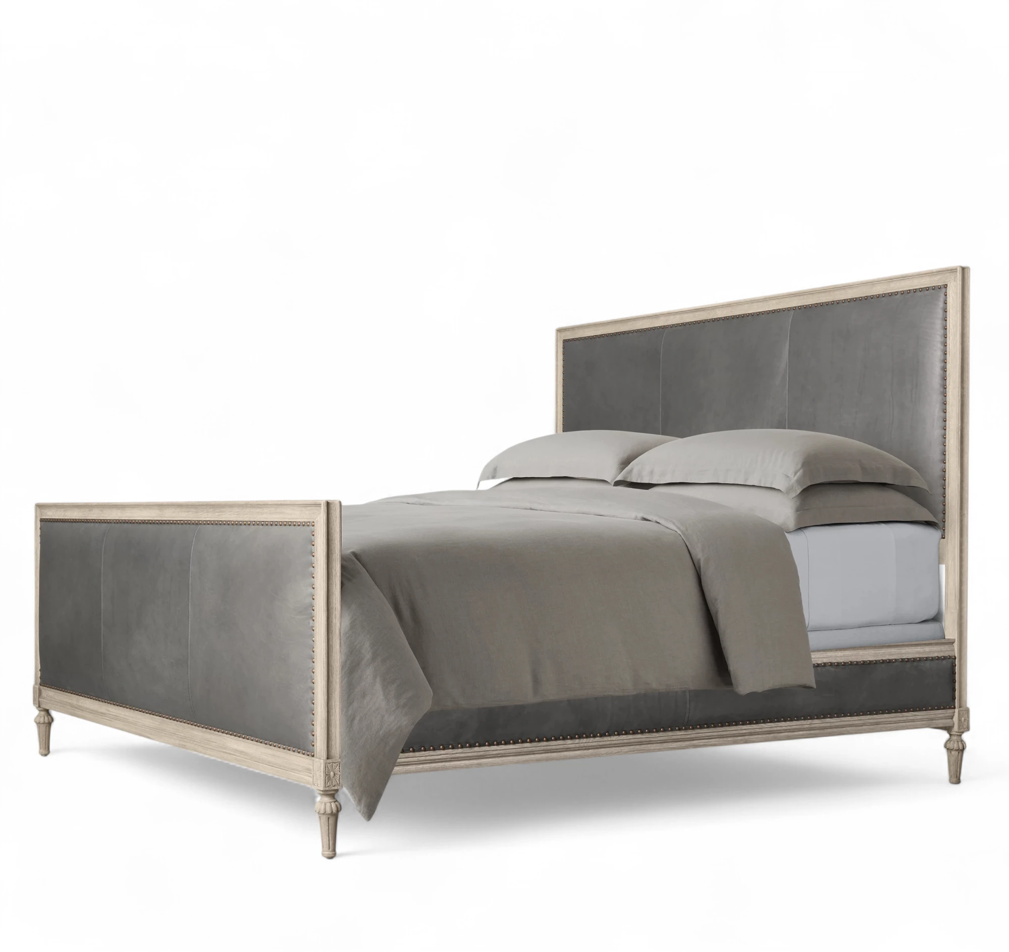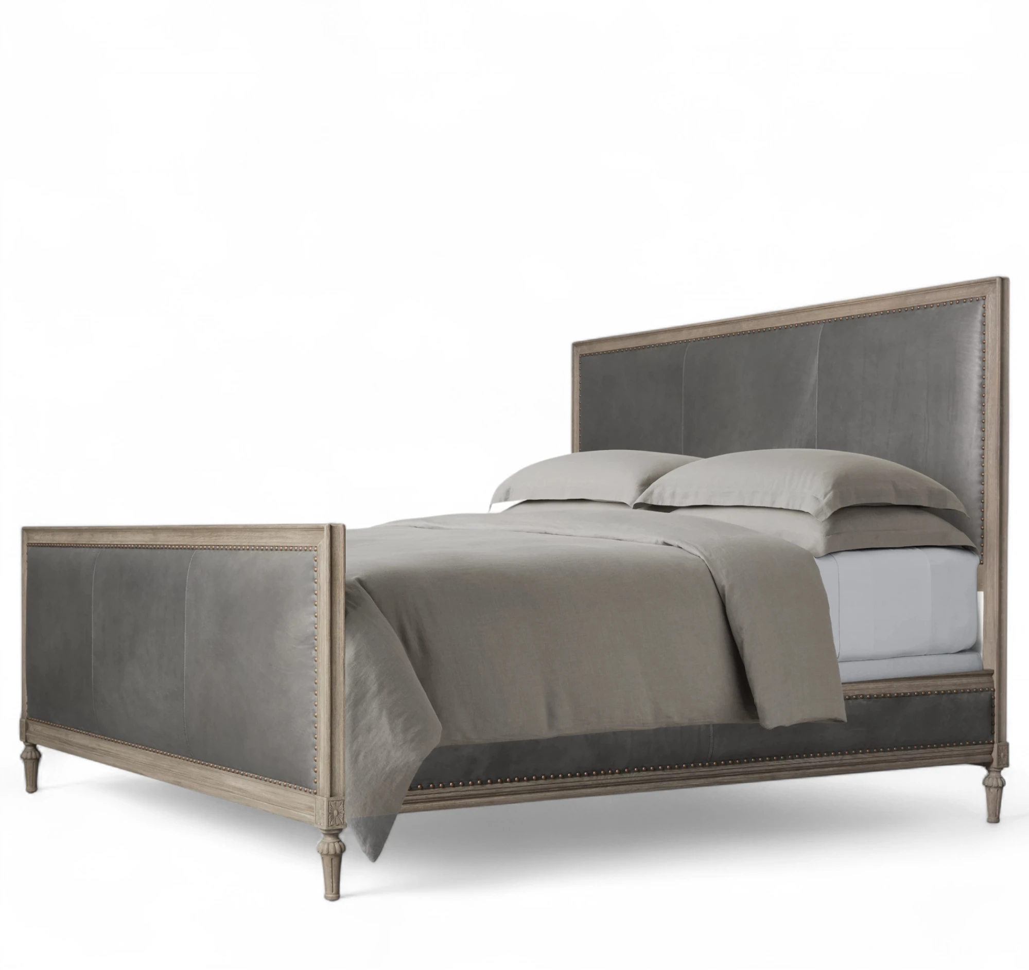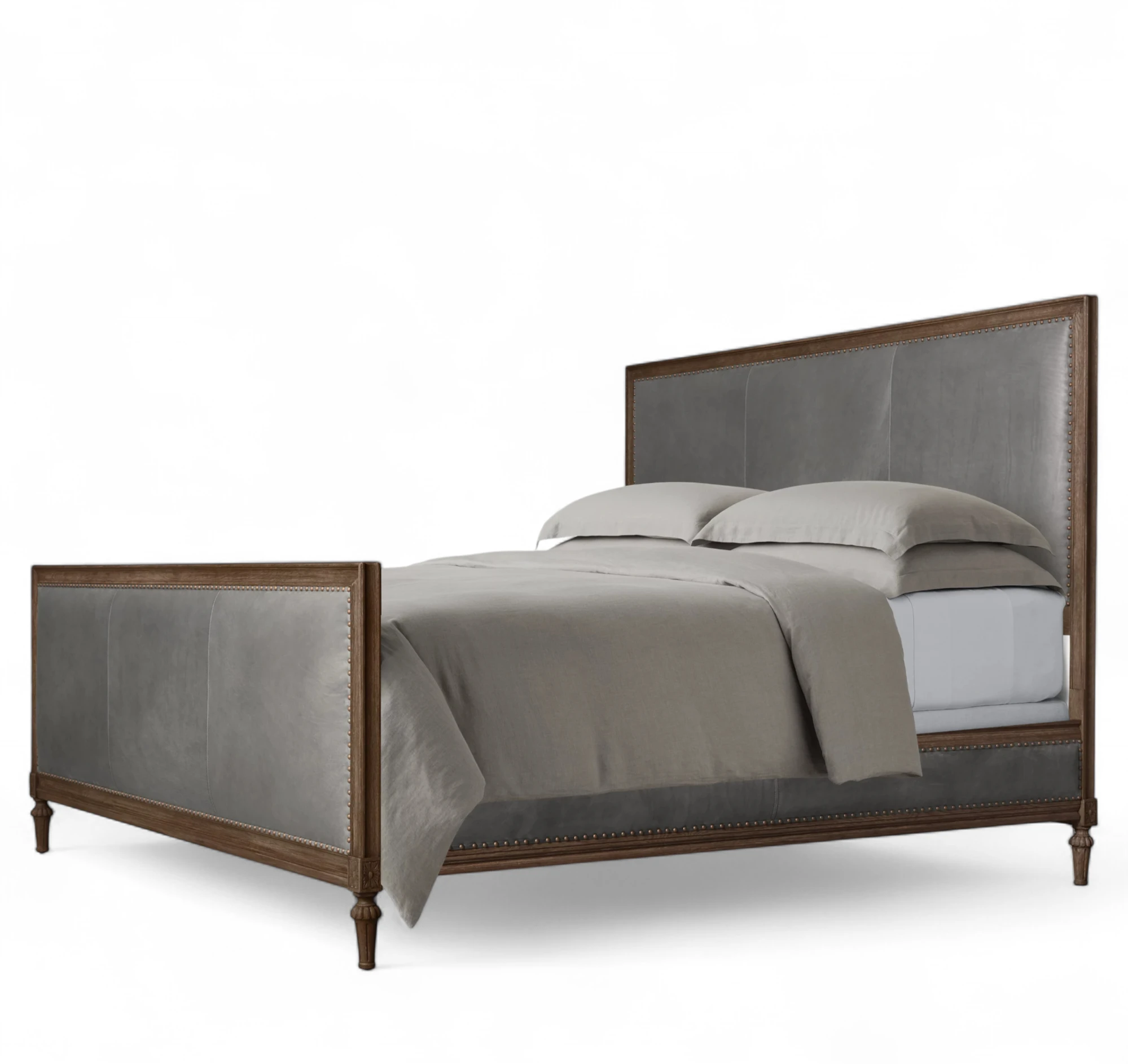 French Leather Panel Bed With Footboard