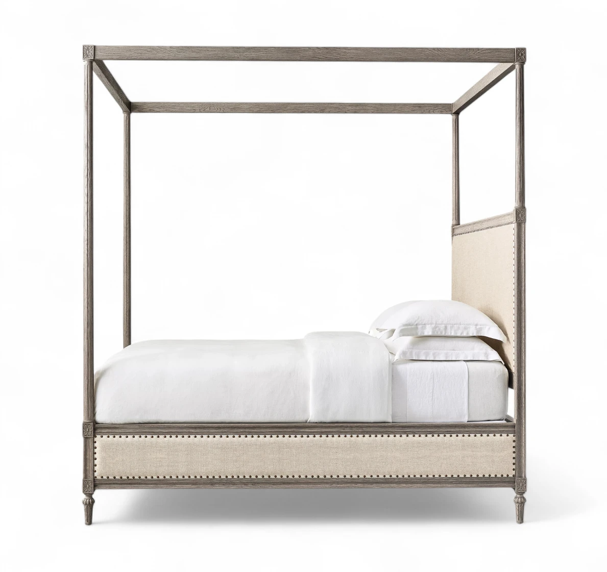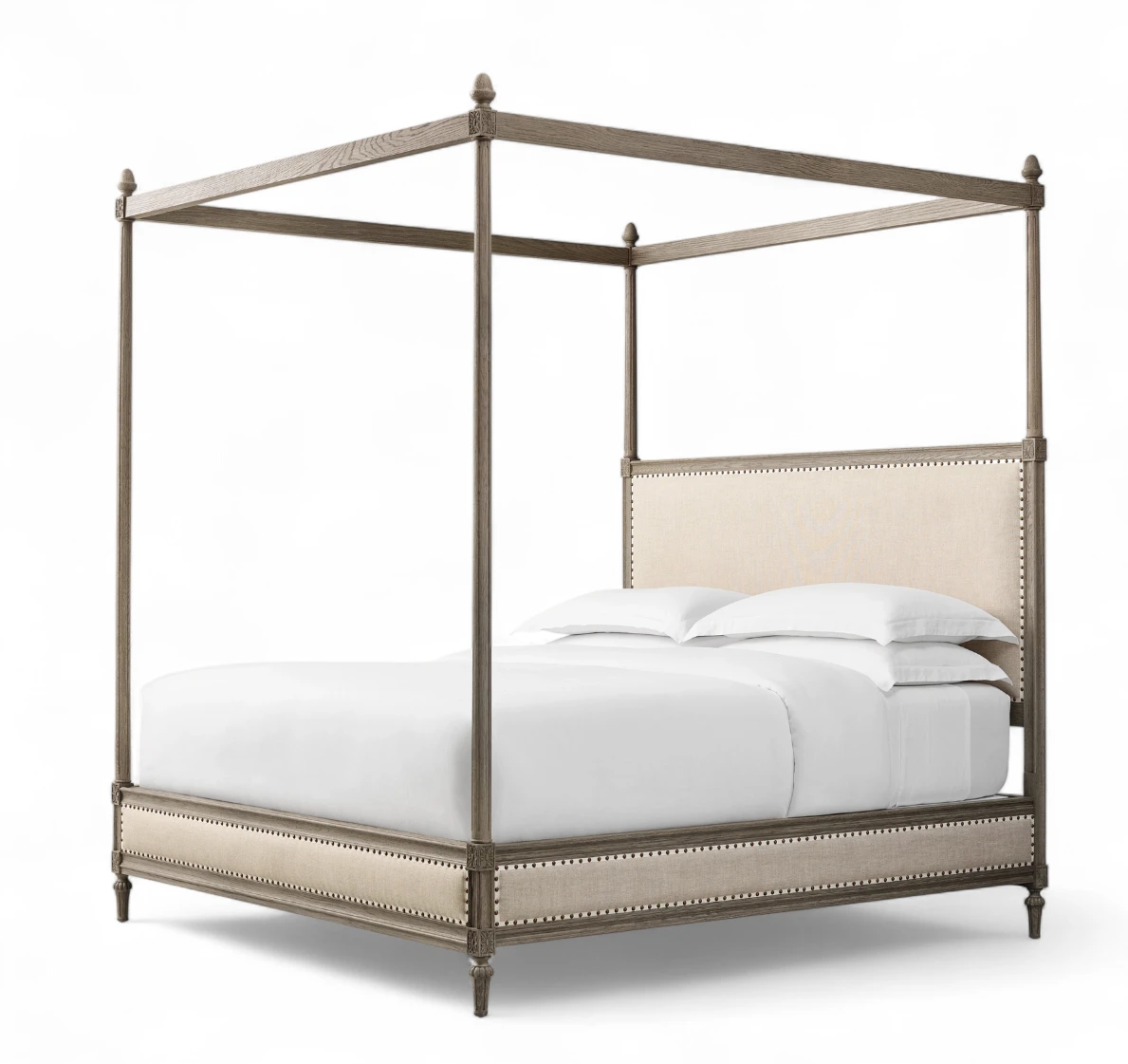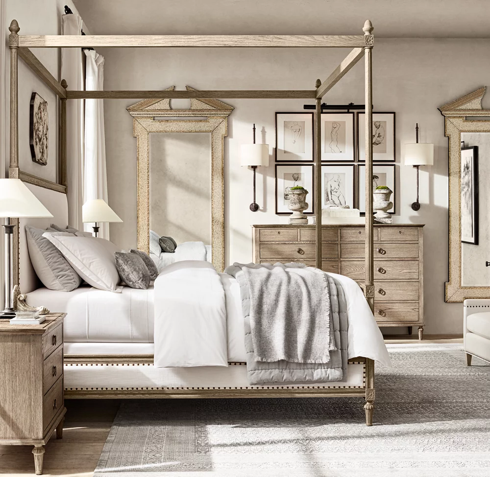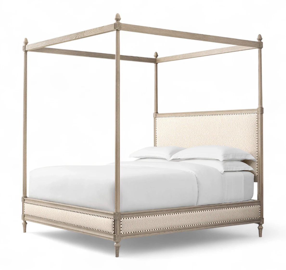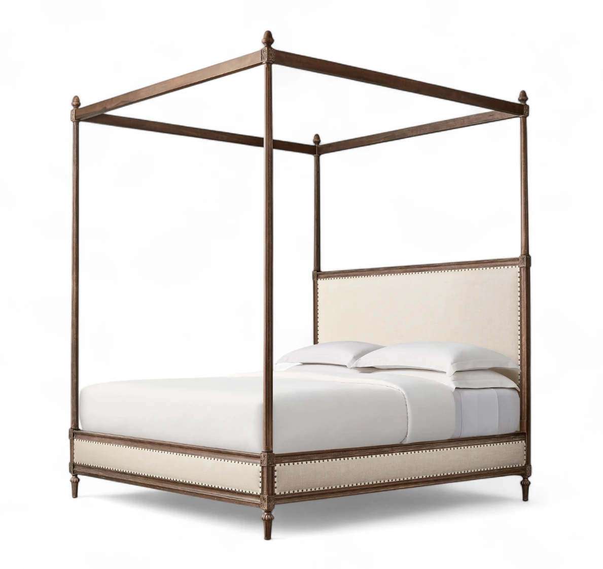 French Upholstered Panel Canopy Bed