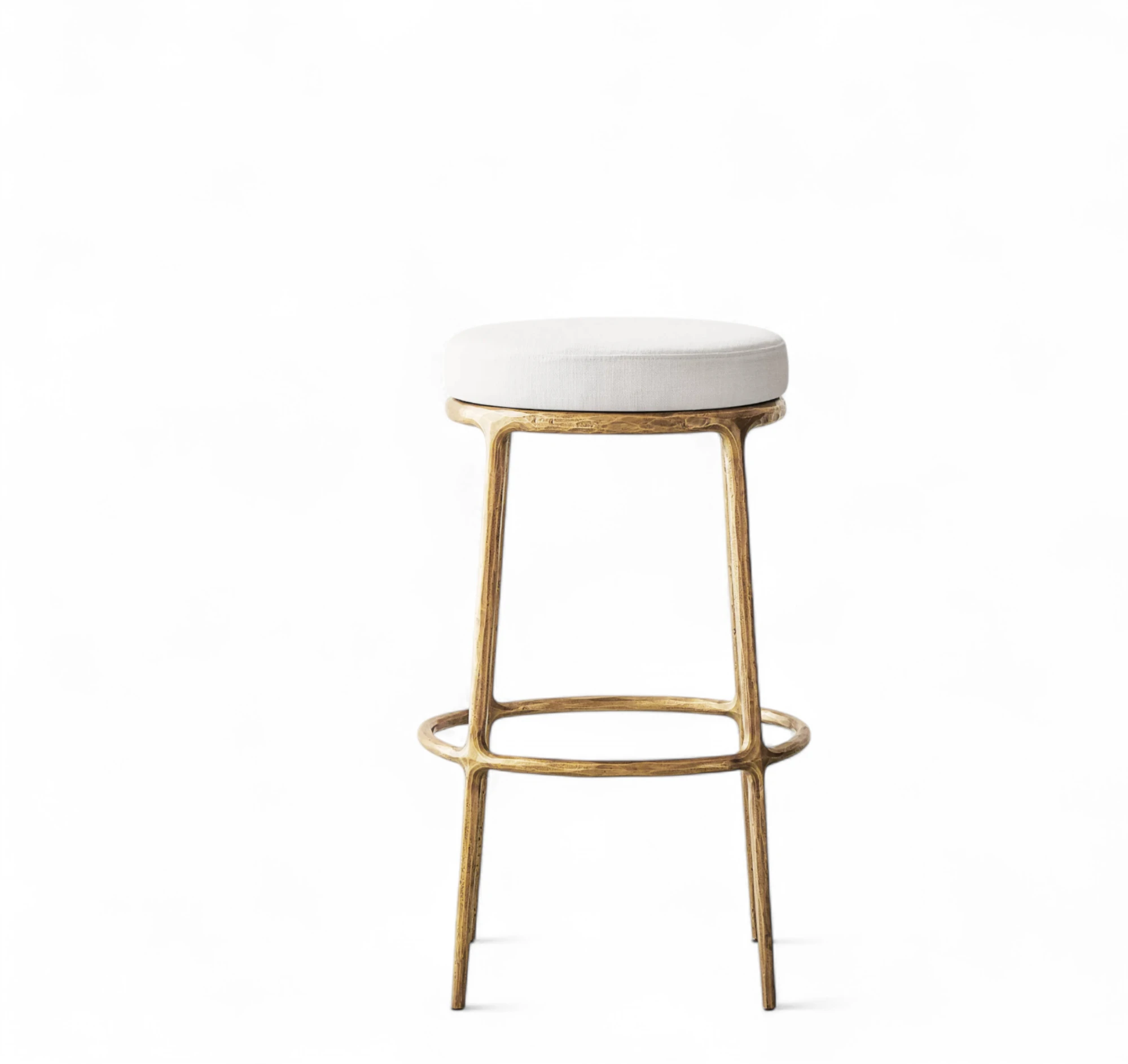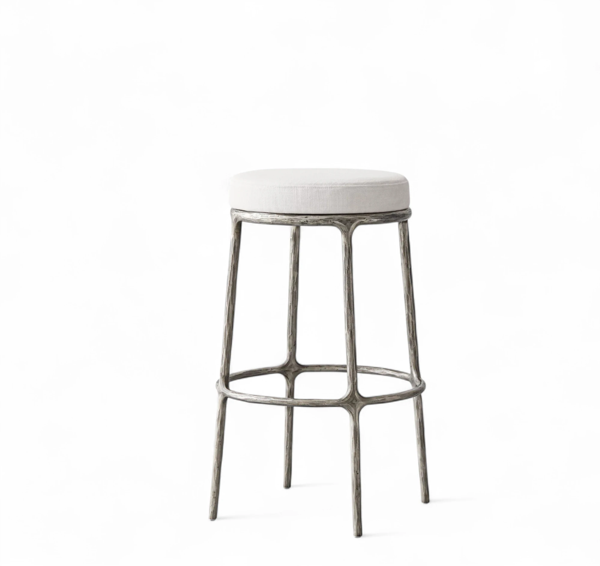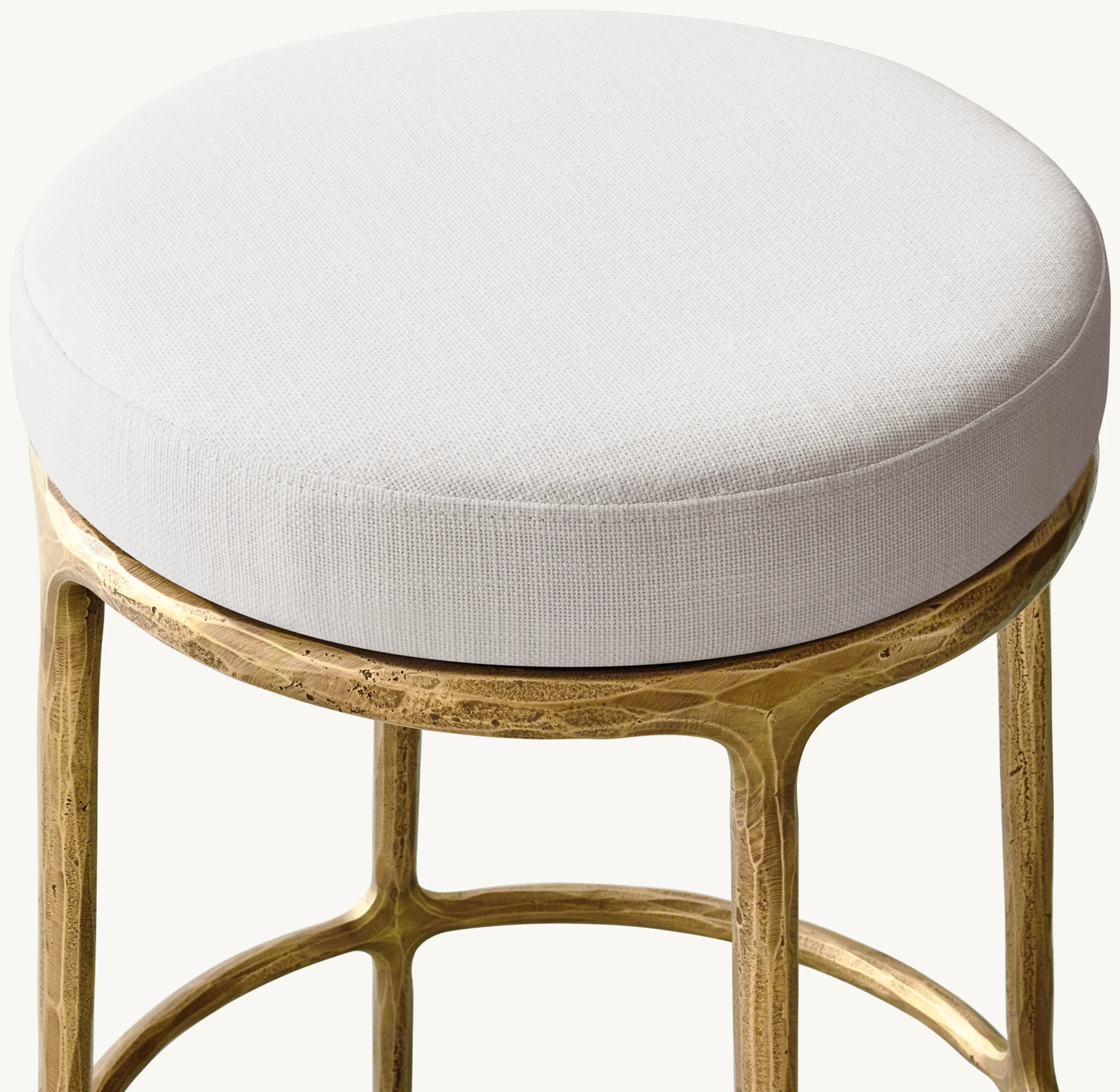 • Handmade Forged Backless Fabric Swivel Bar & Counter Stool