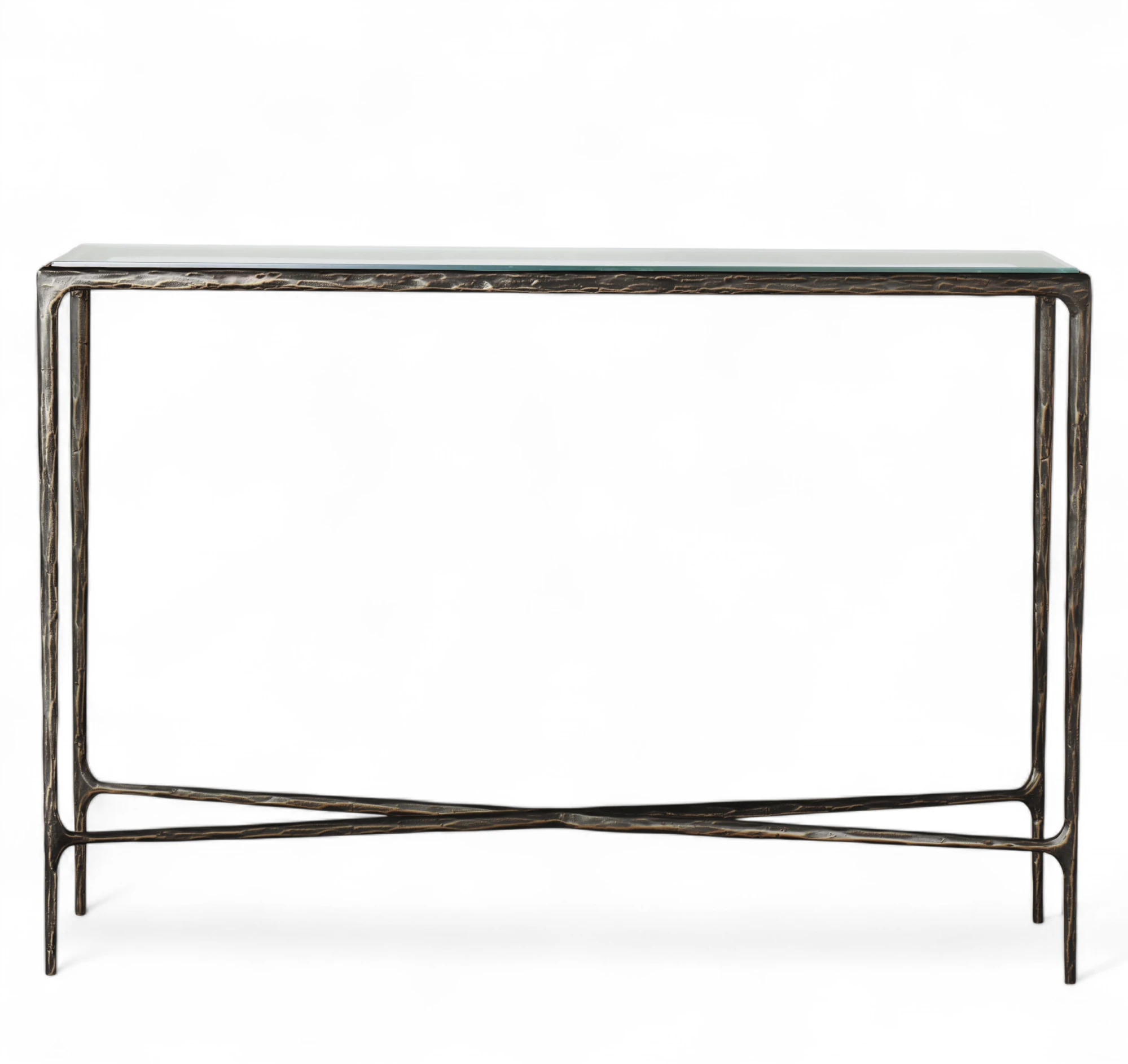 - Handmade Forged Metal Glass Console Table