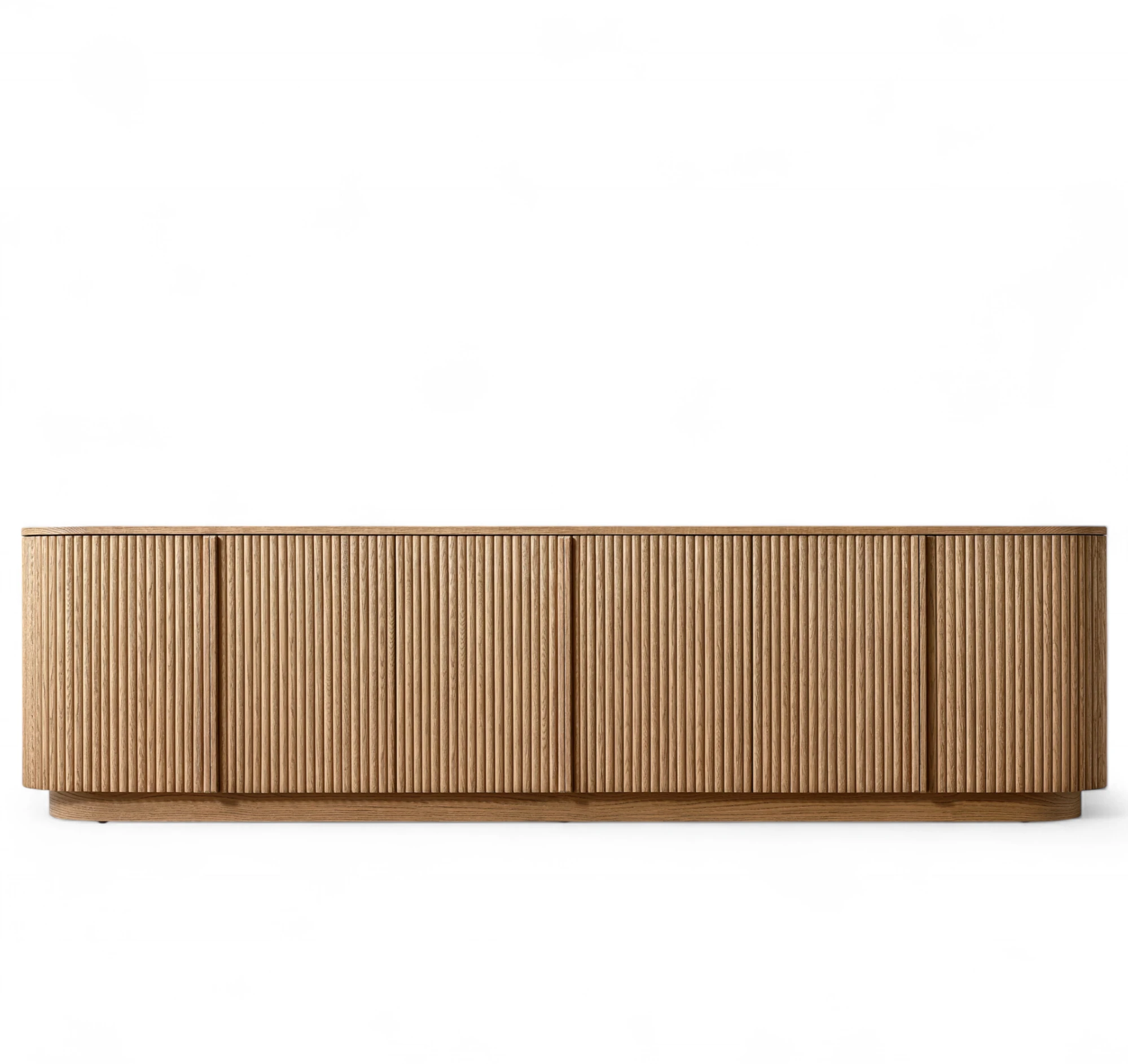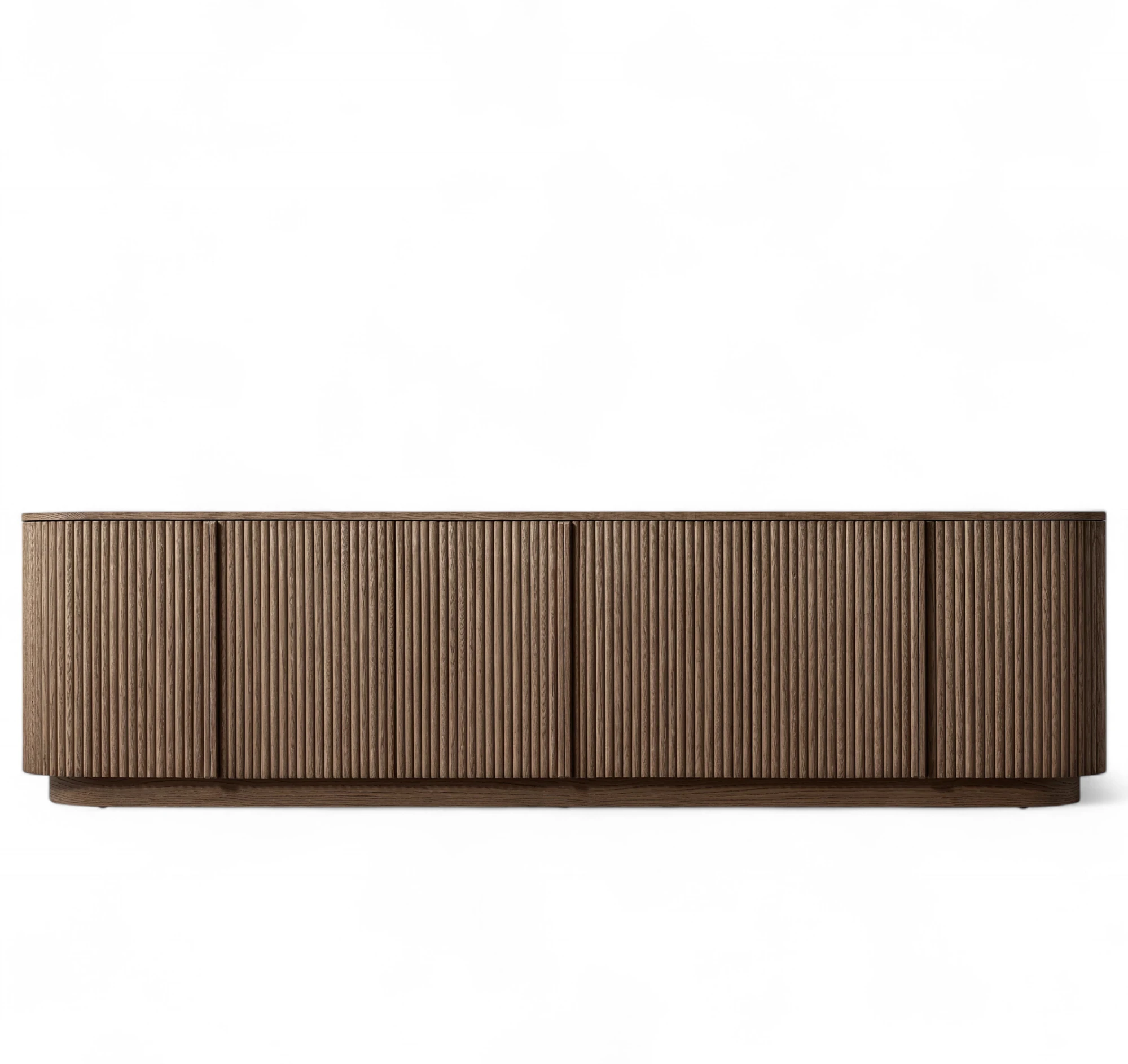 - Our media consoles are designed to display a television at eye level while seated, allowing 4″ to 6″ clearance between console and bottom of screen for optimal viewing height