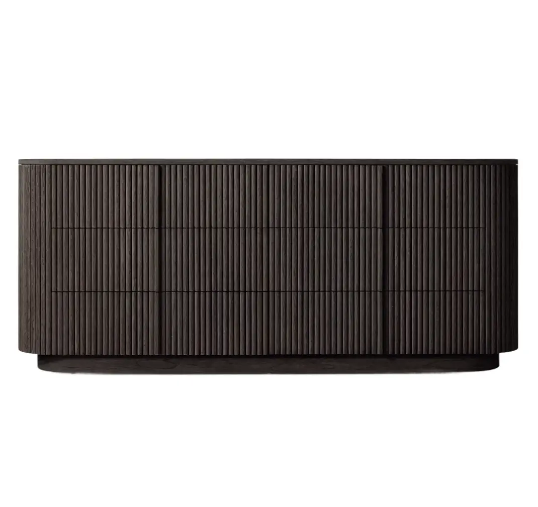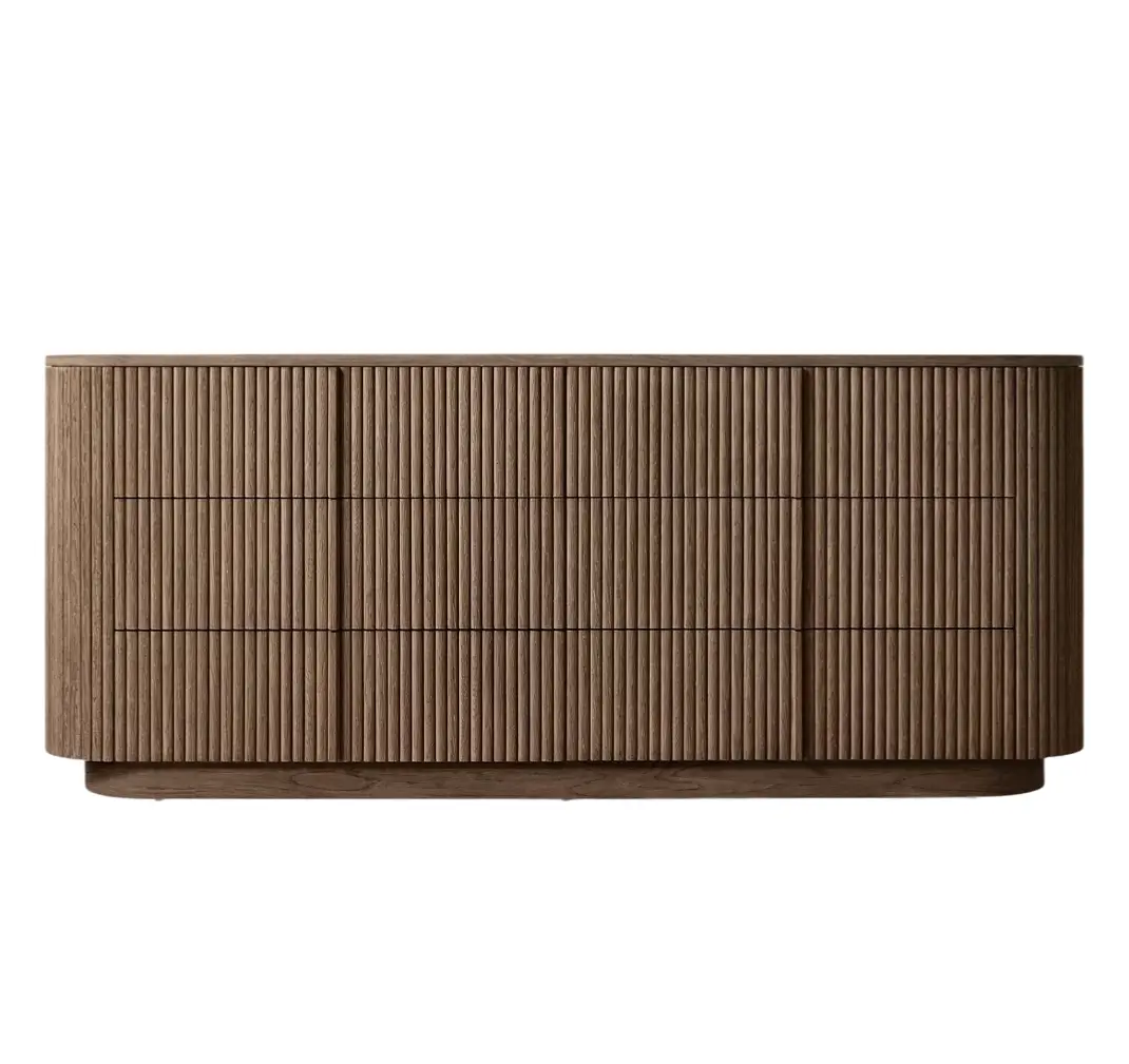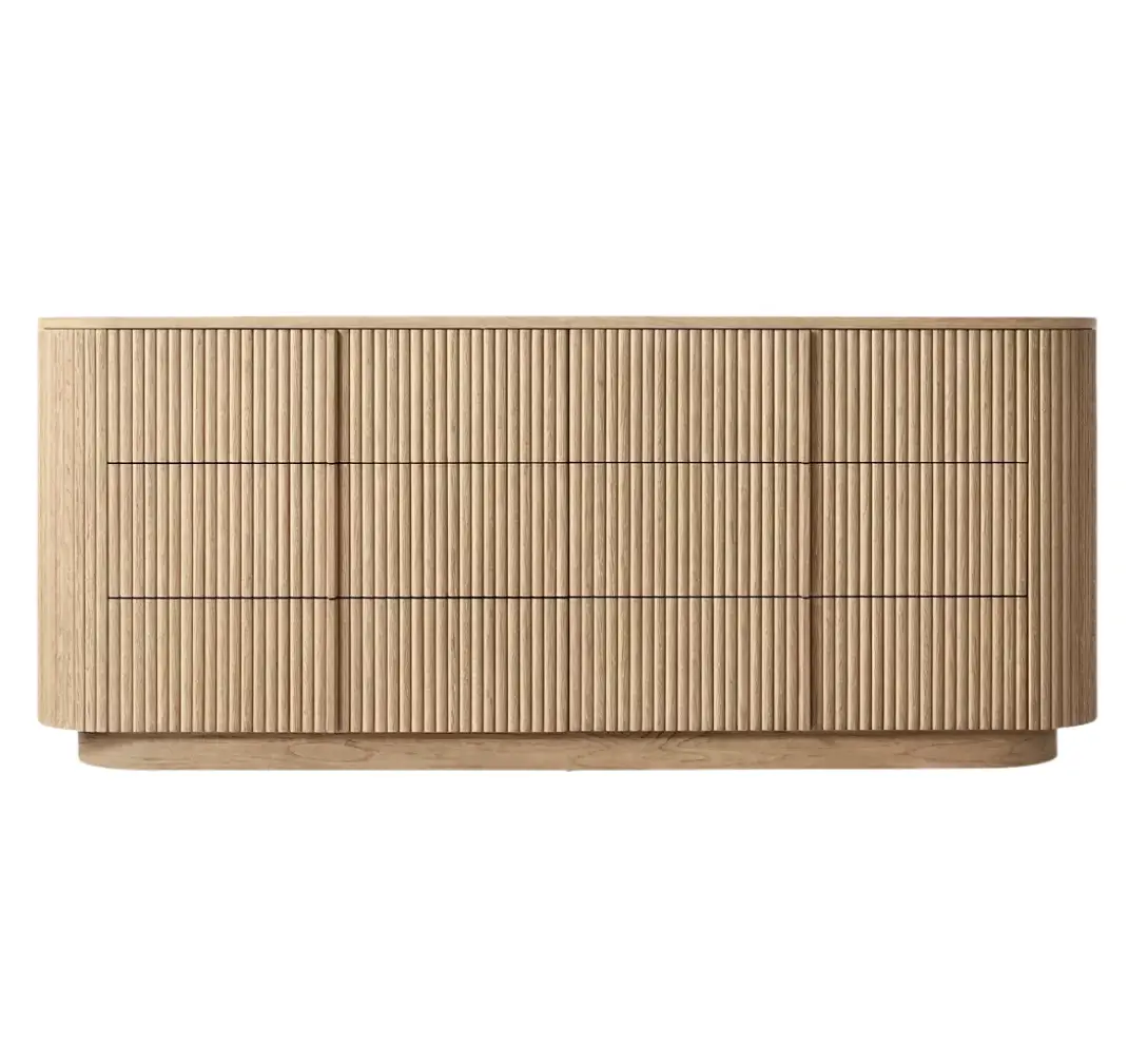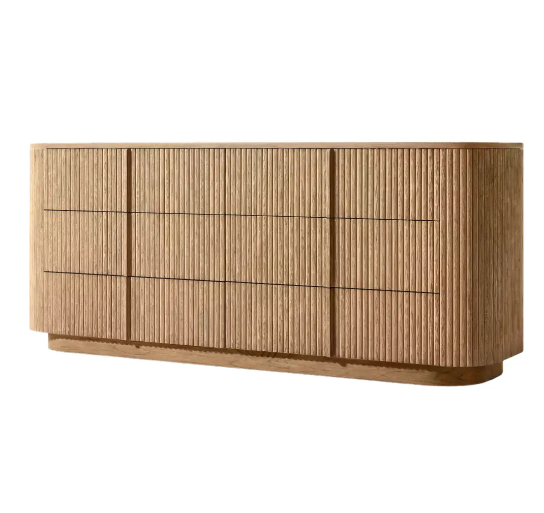- Vertical surfaces feature solid oak reeding