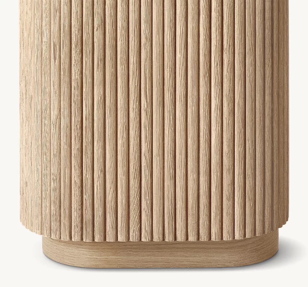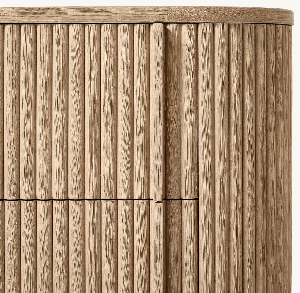 - Features solid oak reeding on all vertical surfaces, including the back, allowing versatility in room placement