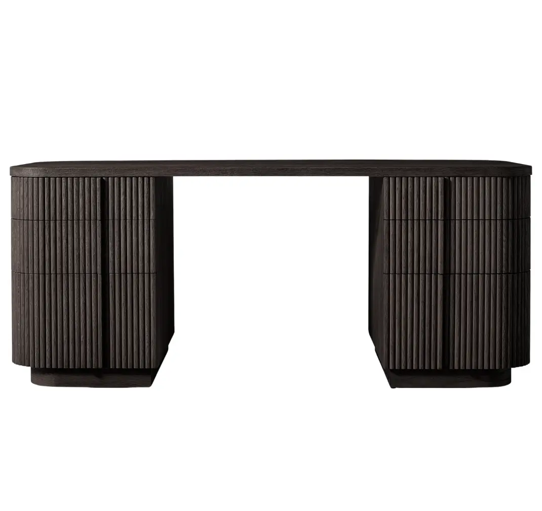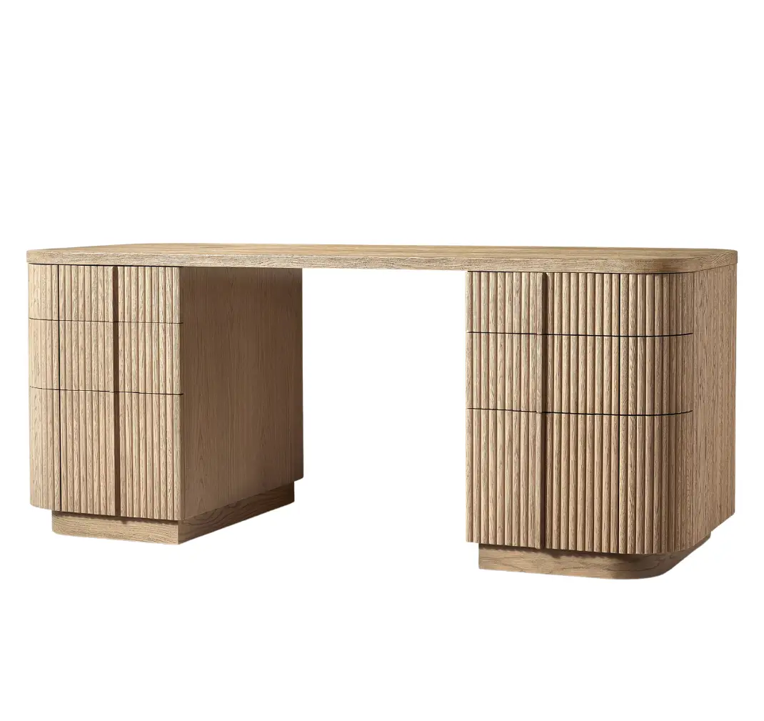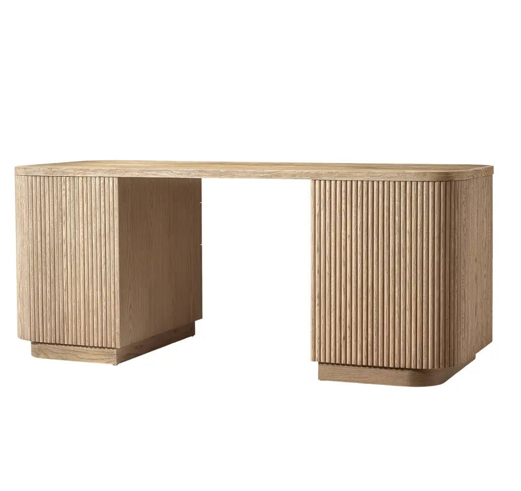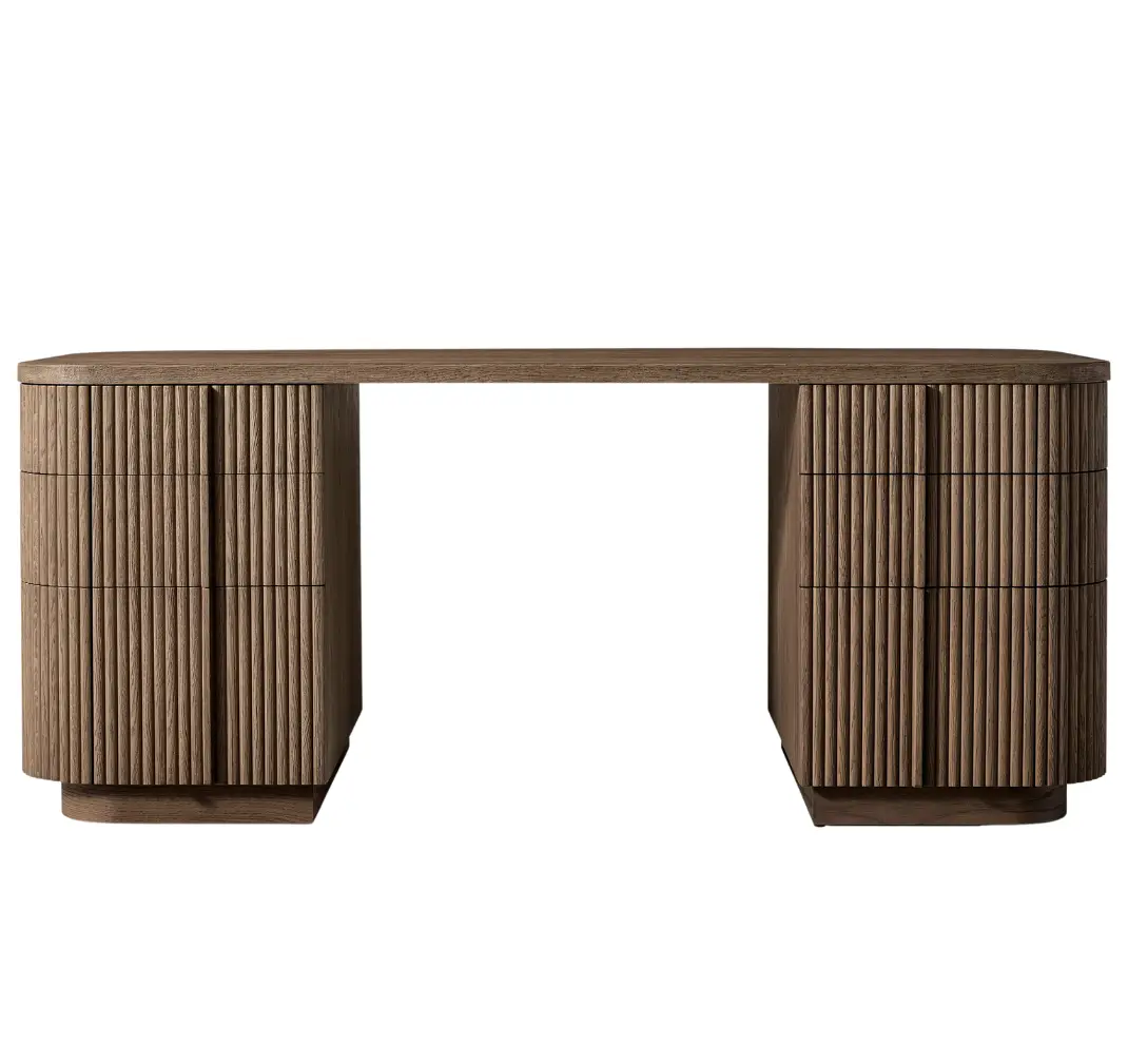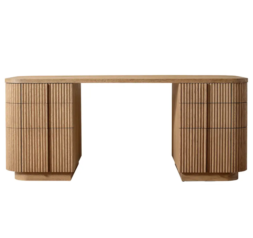 - Vertical surfaces feature solid oak reeding