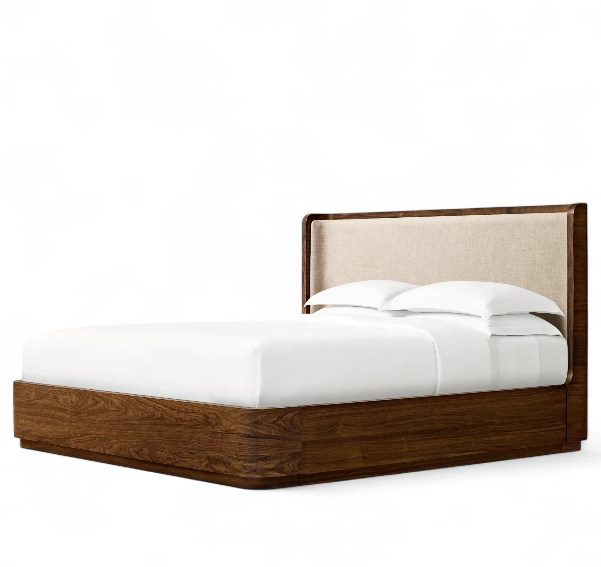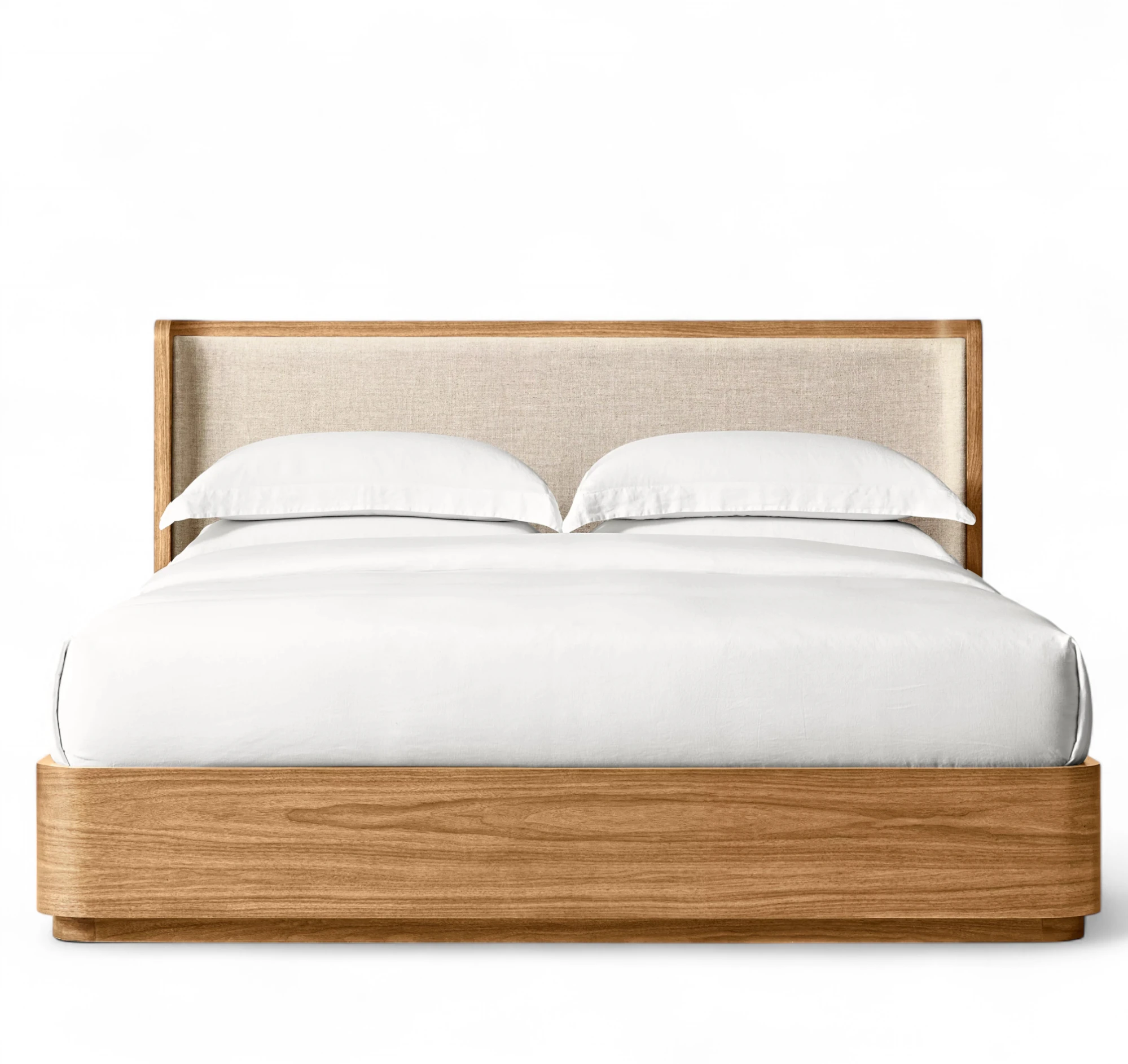• Platform support features two height options: low setting accommodates box spring and mattress, high setting accommodates mattress only; platform support has a complementary finish and includes wood grommets in a tonal finish