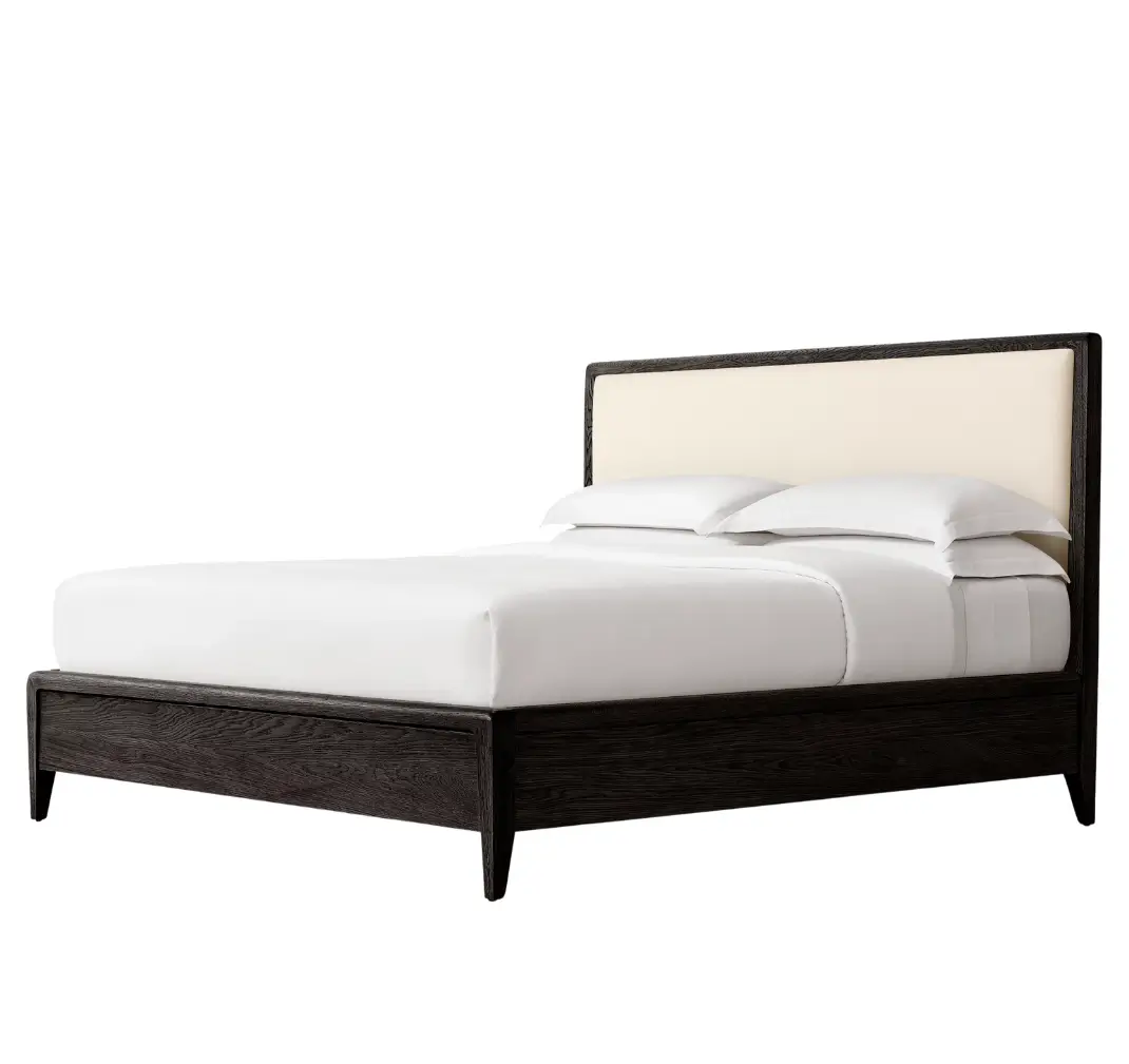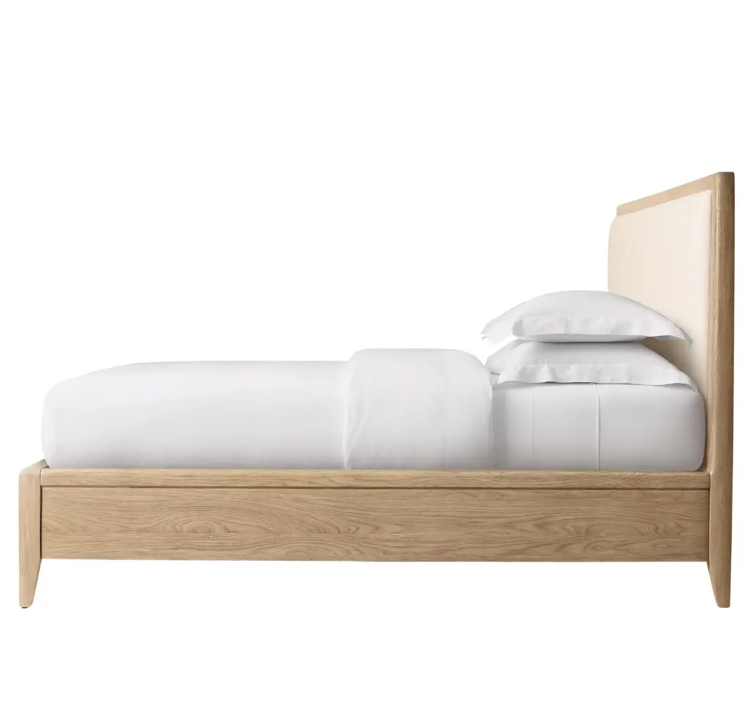 • Virginia Oak Fabric Panel Wood Queen Bed