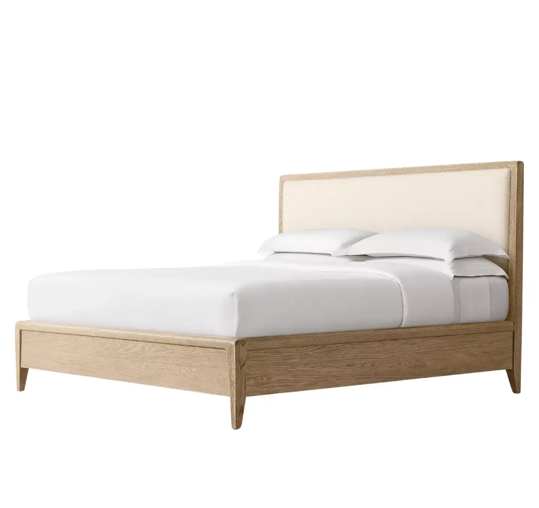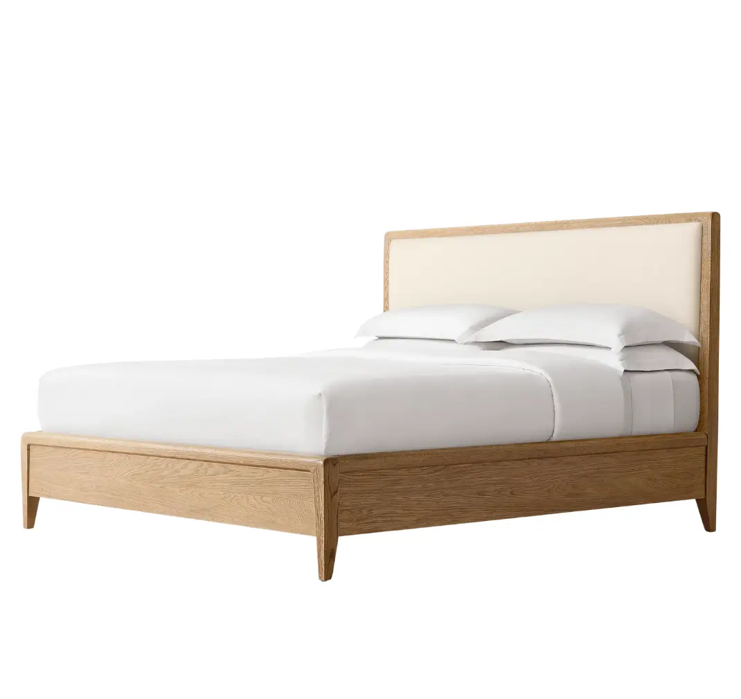 Virginia Oak Fabric Panel Wood Queen Bed