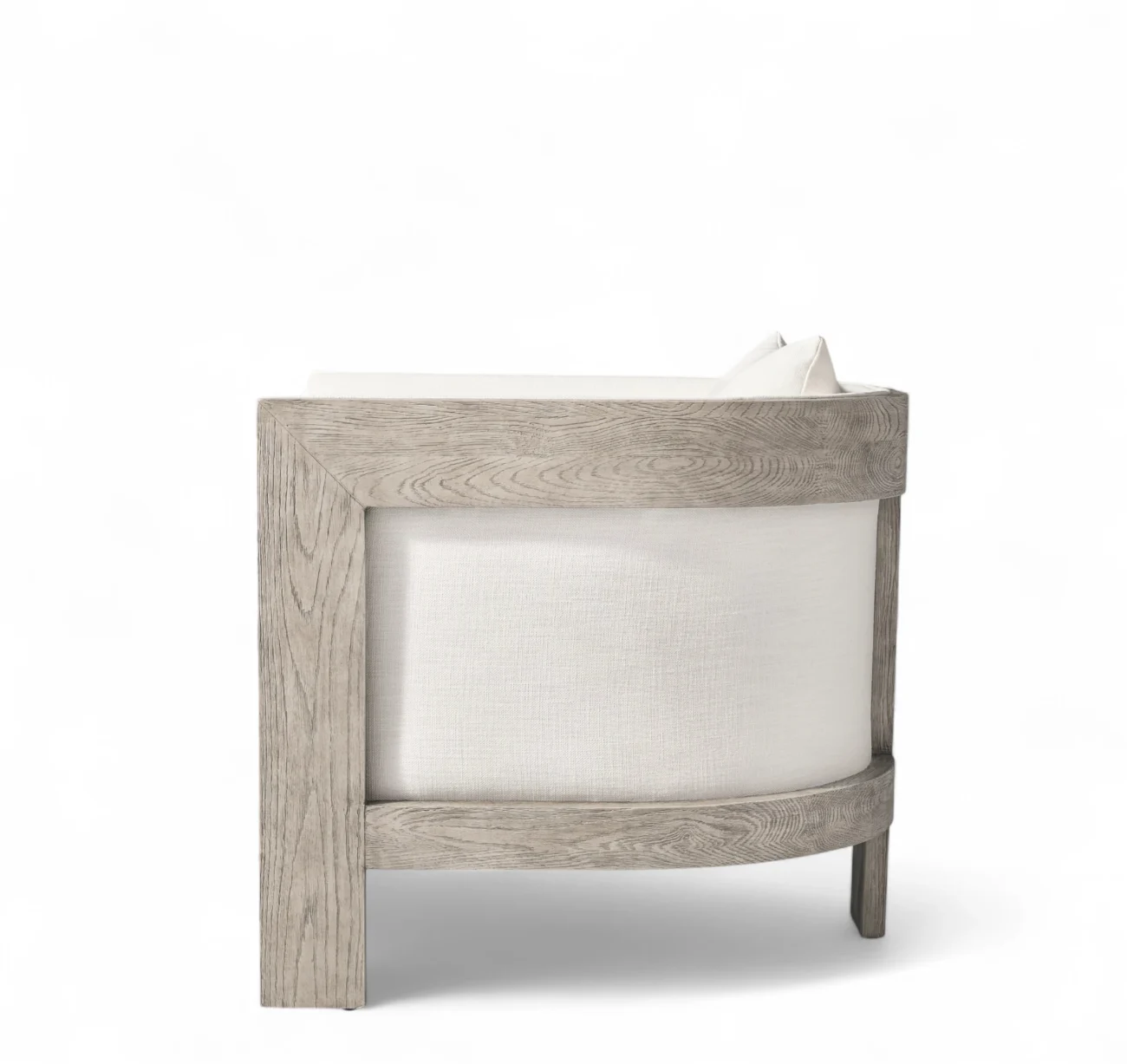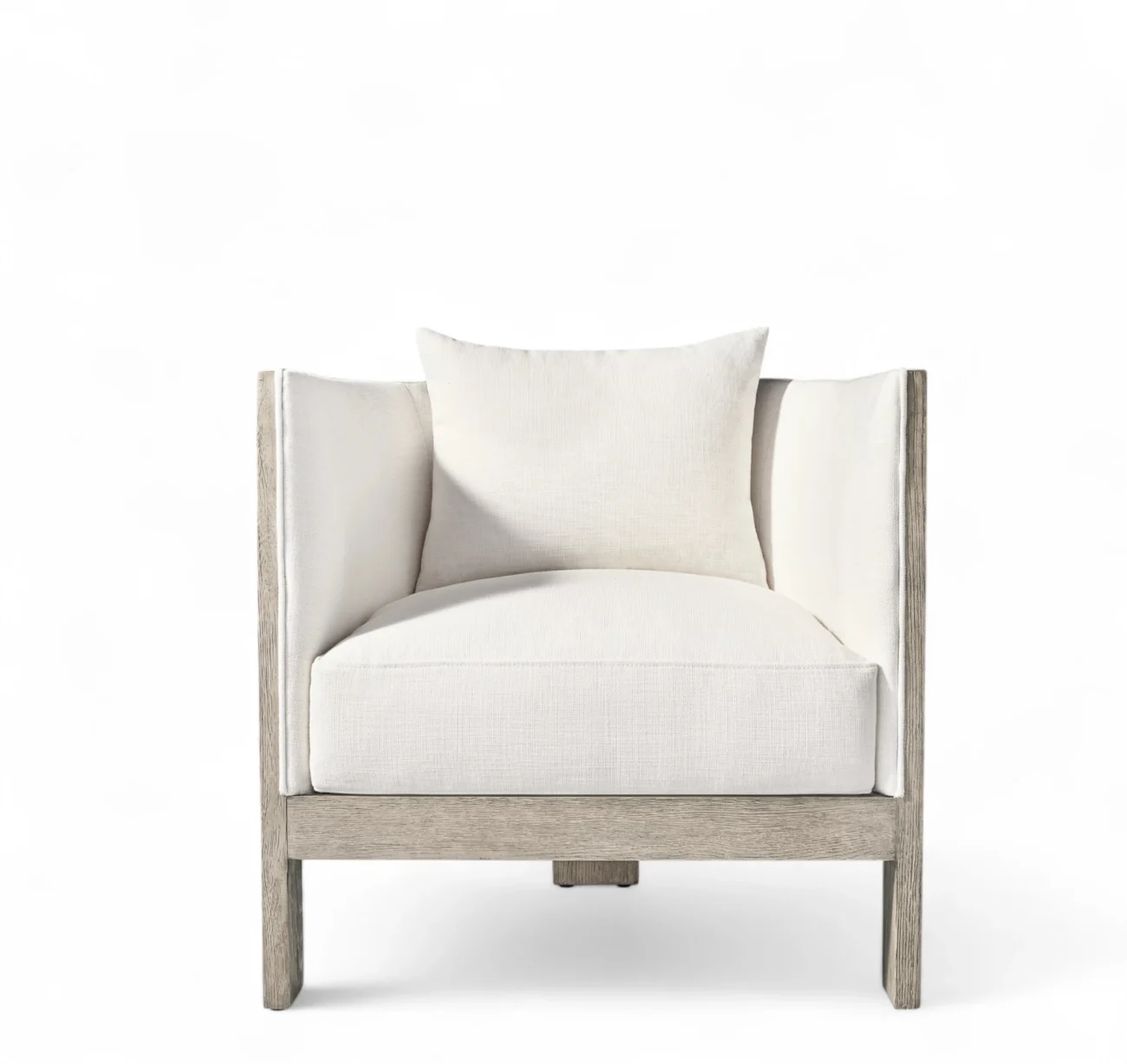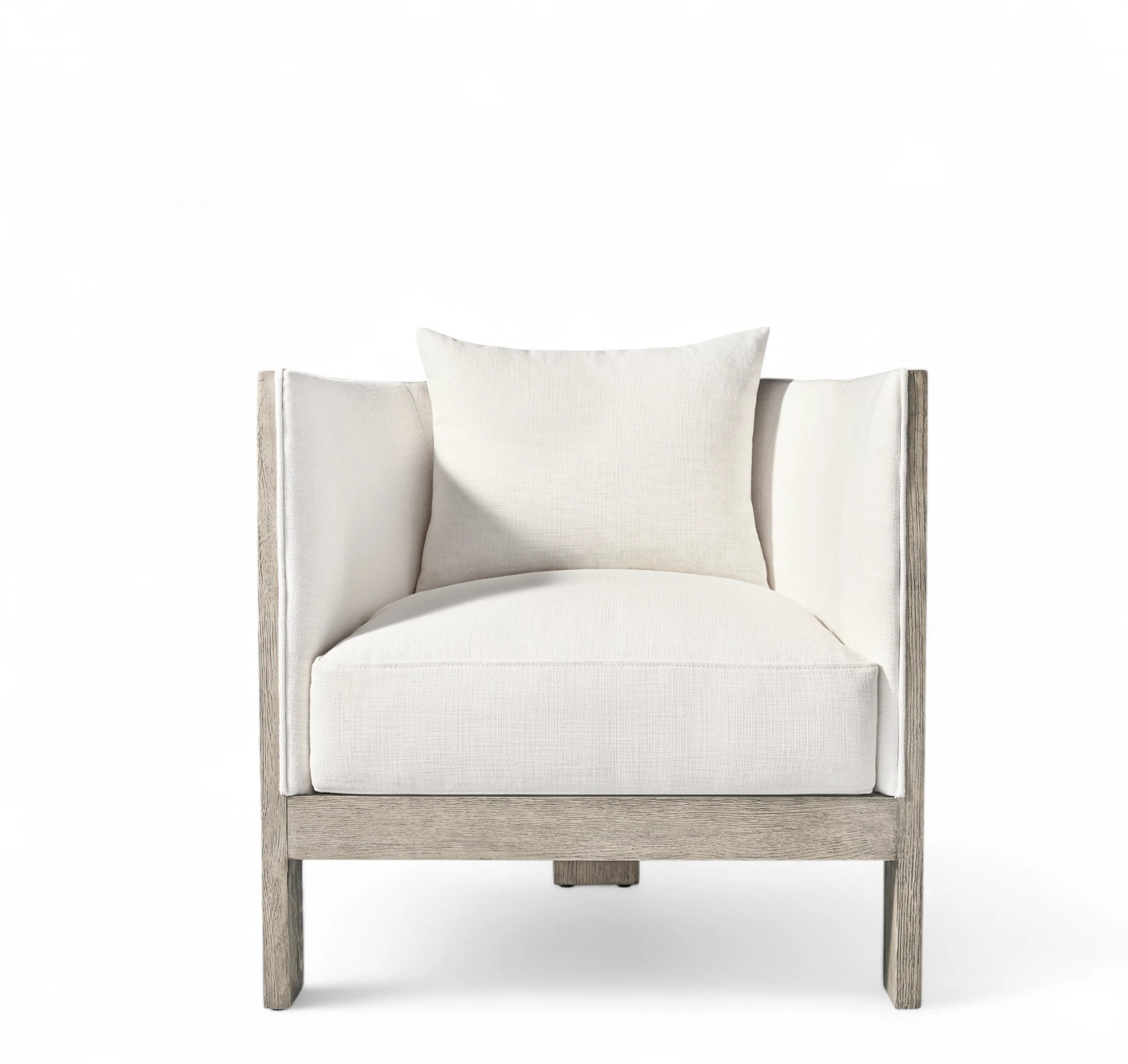 • Detached seat cushion and loose back pillow made from high-resilience polyurethane foam topped with a polyfiber and feather blend