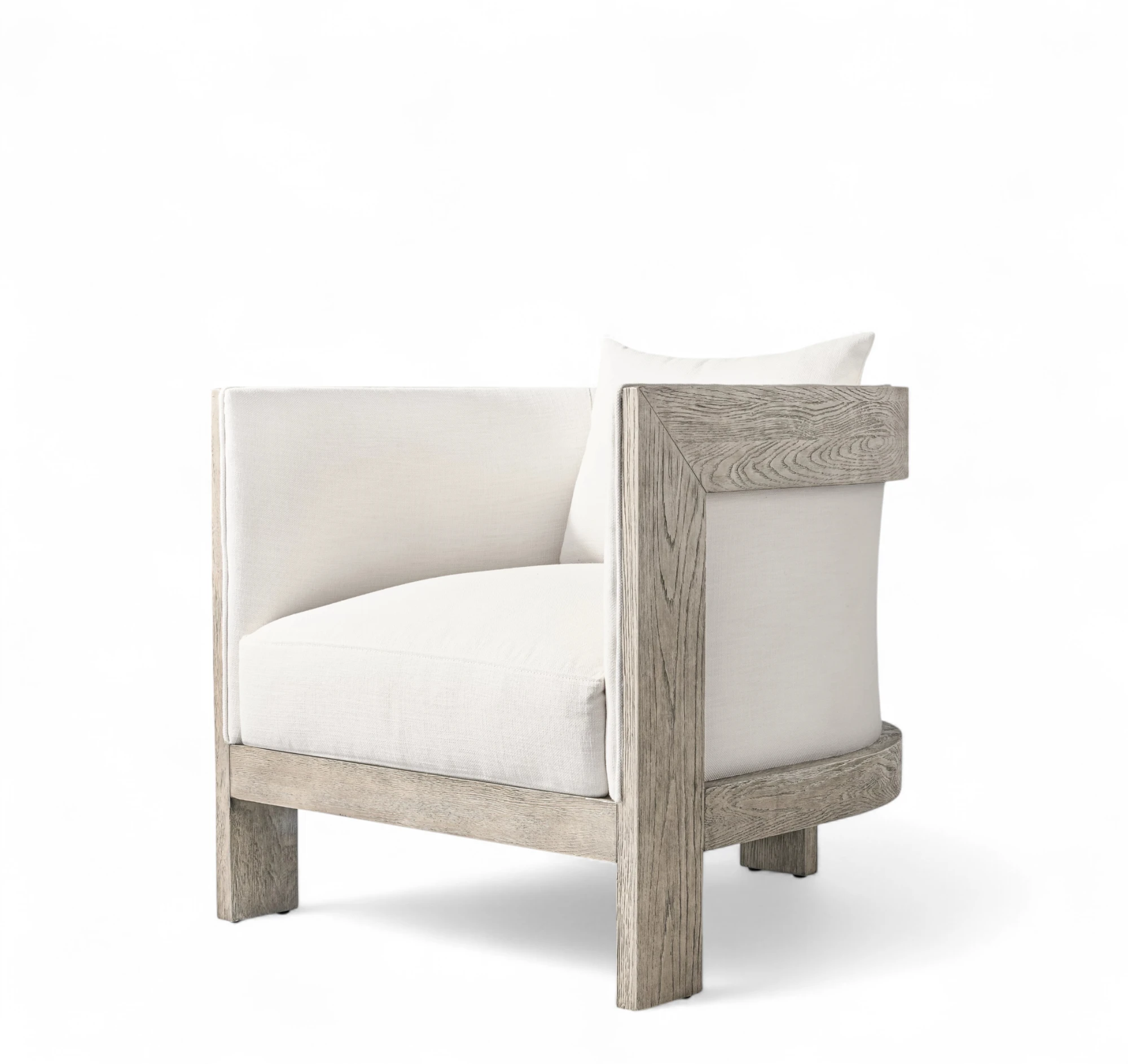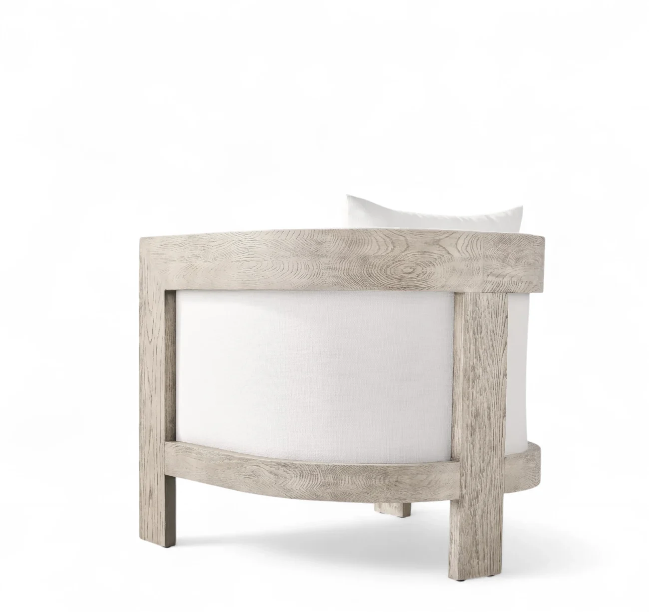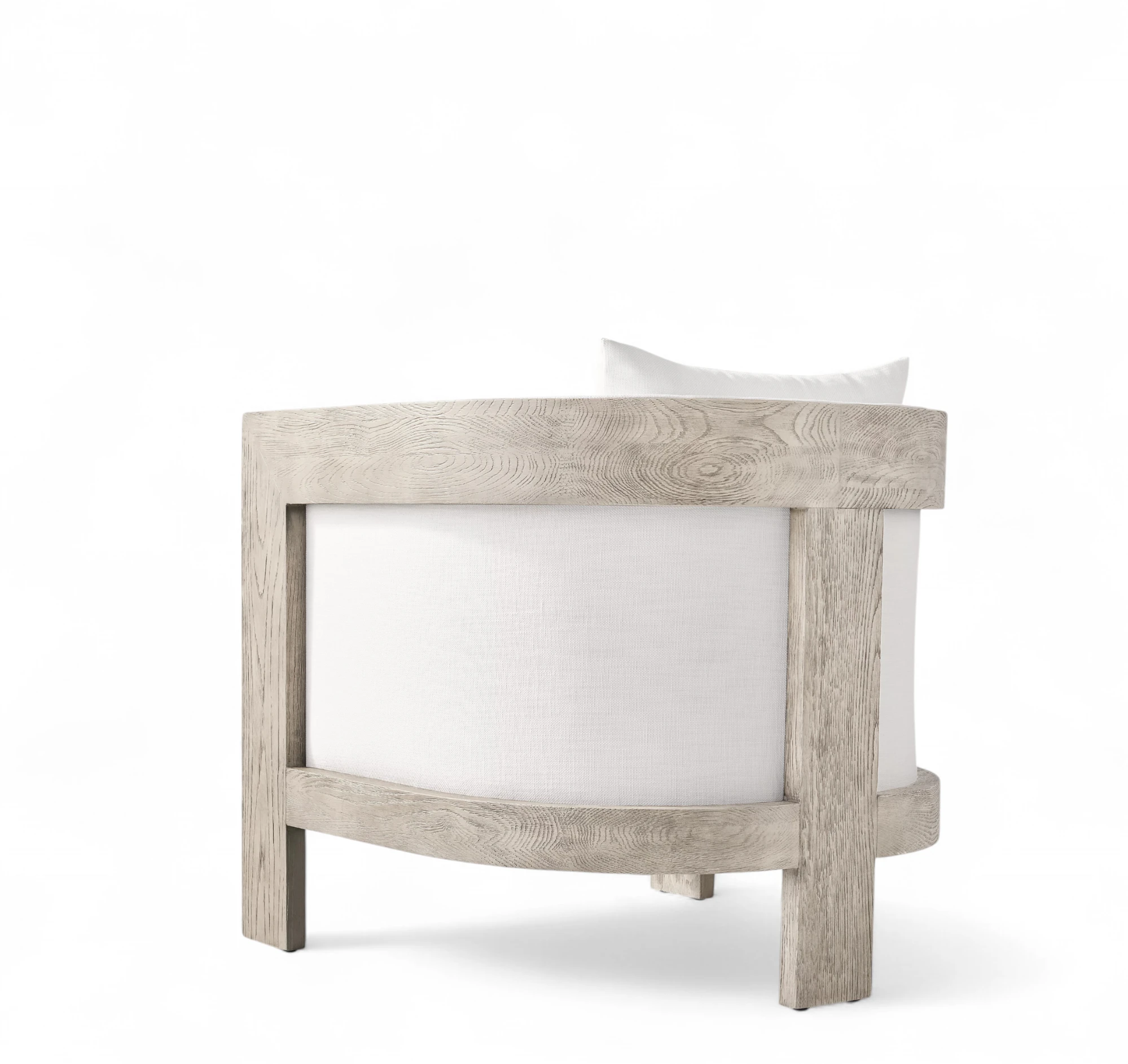 • Detached seat cushion and loose back pillow made from high-resilience polyurethane foam topped with a polyfiber and feather blend